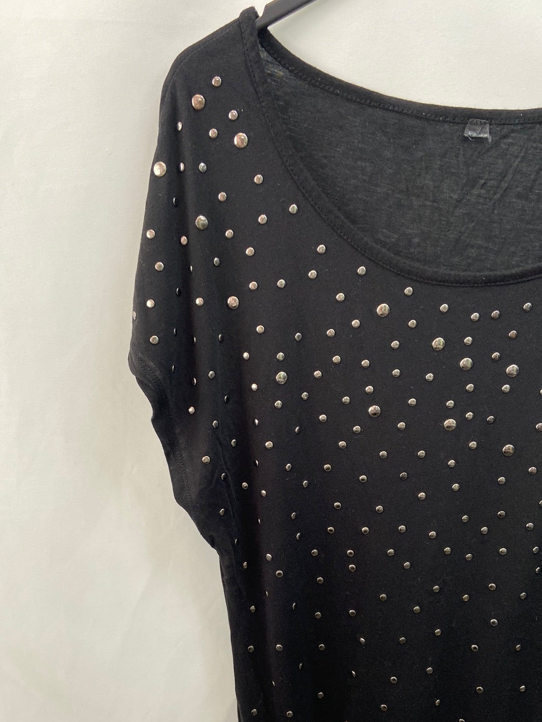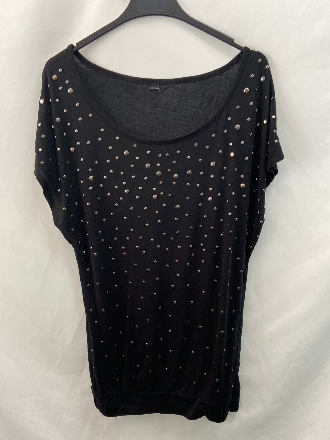 Otras. Top negro elástico con tachuelas. Largo 77 cm