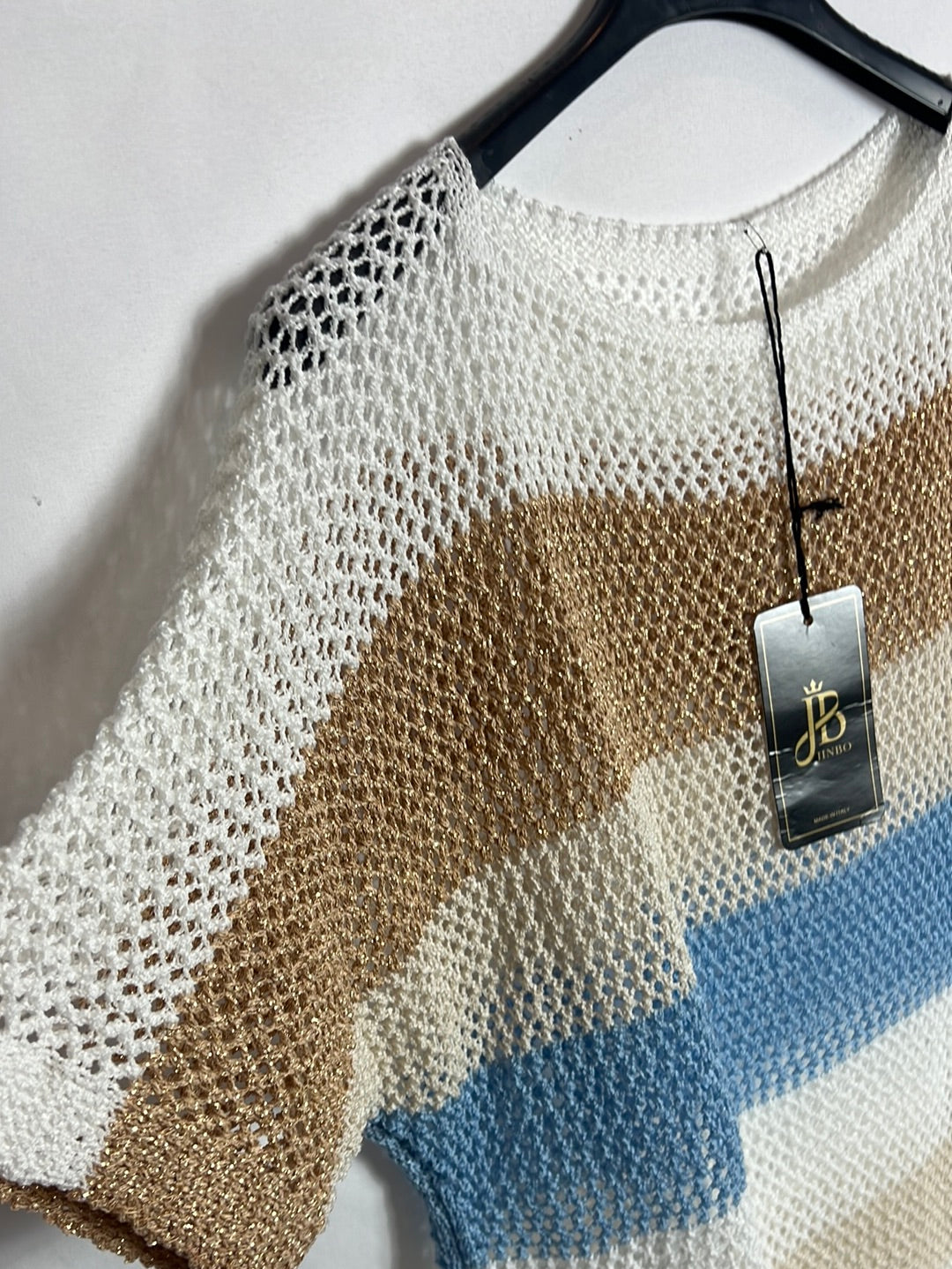 NUEVO CON ETIQUETA. Top punto calado tricolor. Largo 57cm