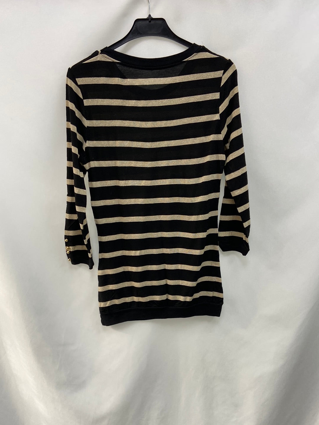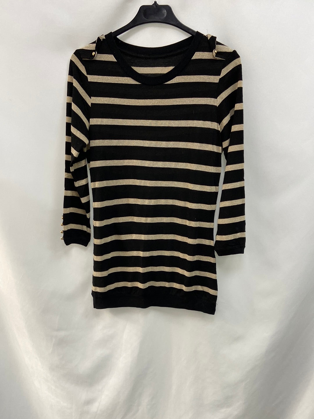 top de rayas negro y beige. elástico. Largo 69 cm .