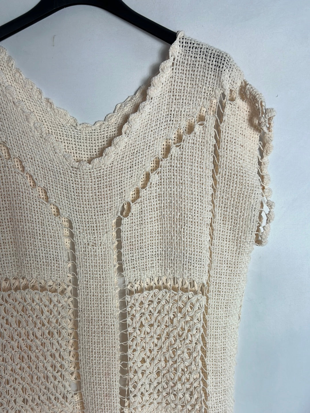 Vestido beige calado. Tejido no elástico