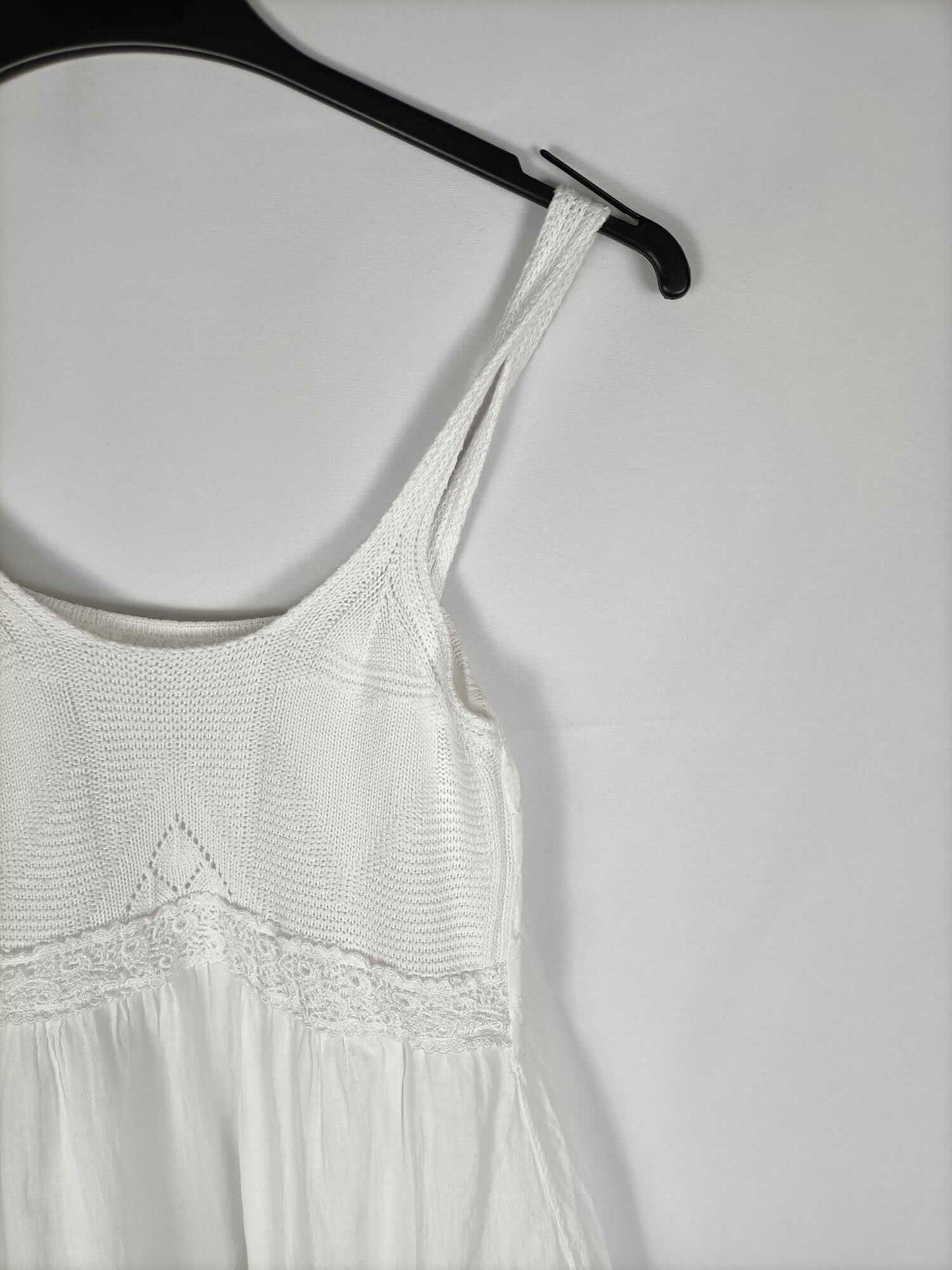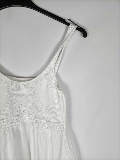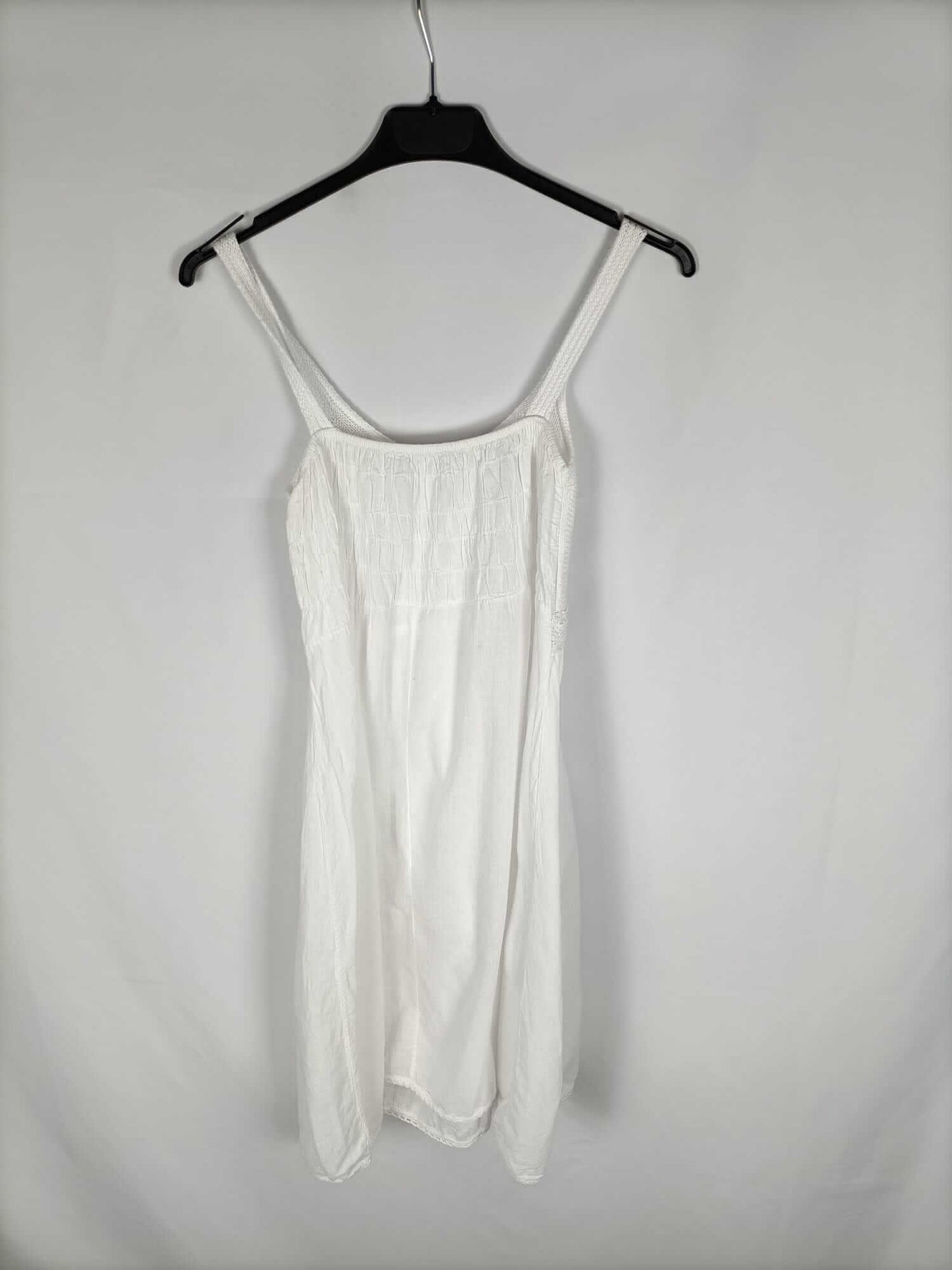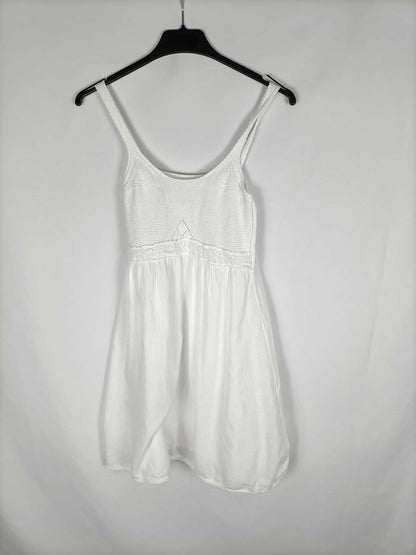 Otras. Vestido corto blanco playero con el escote de punto. Largo 87 cm