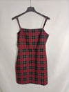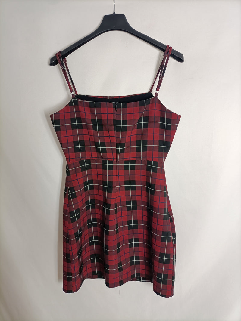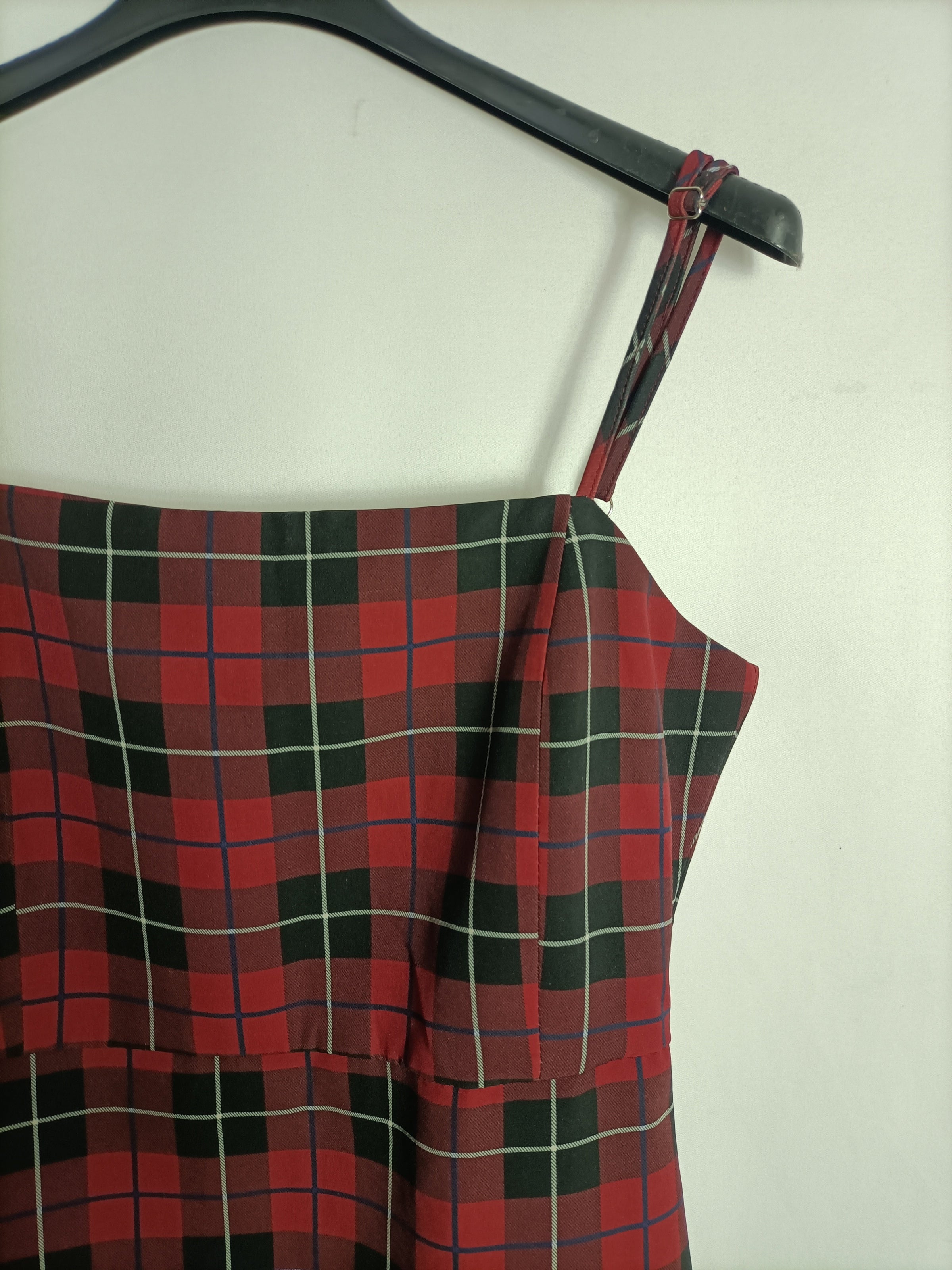 Vestido burdeos de cuadros. Tejido elástico y tirantes ajustables.