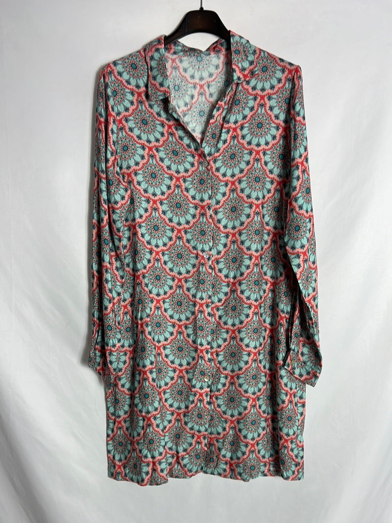 OTRAS. Vestido corto camisero estampado. T S