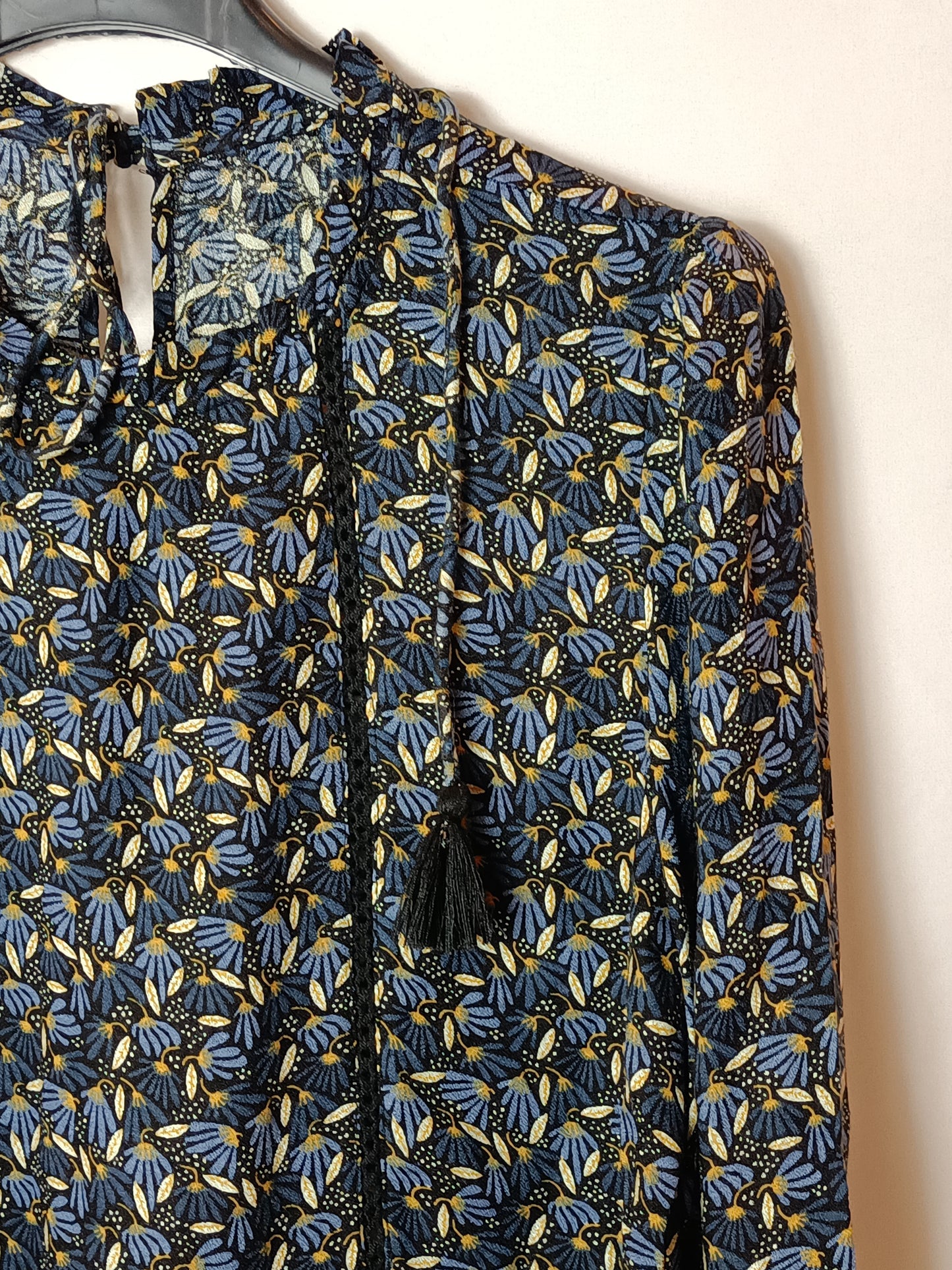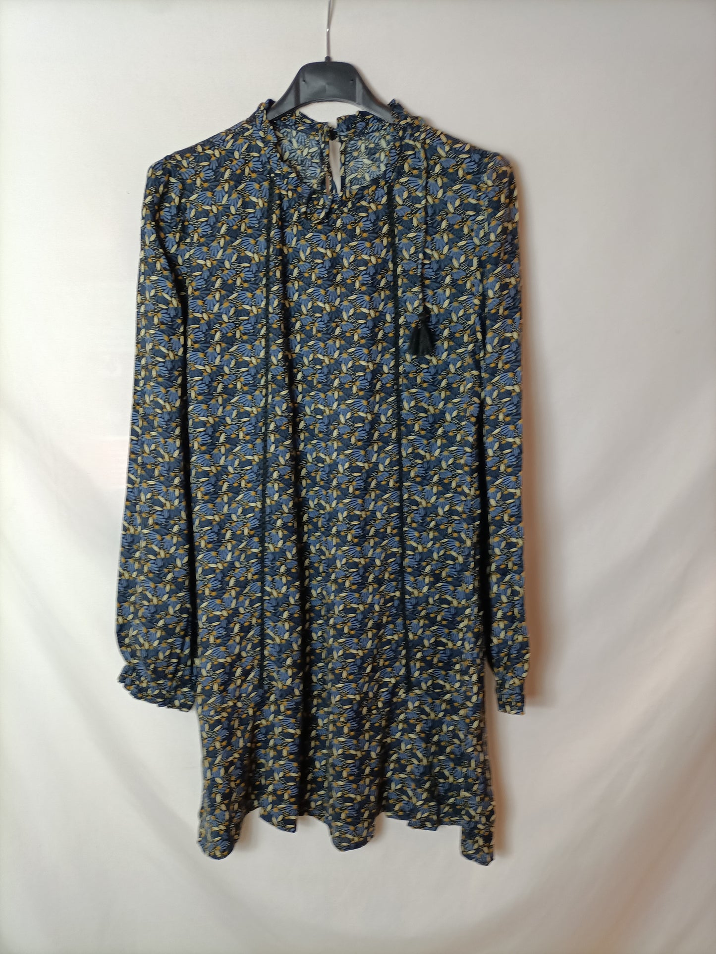 vestido corto negro con flores en azul. de sisa a sisa 47 cm largo 78 cm