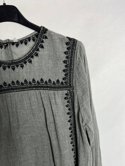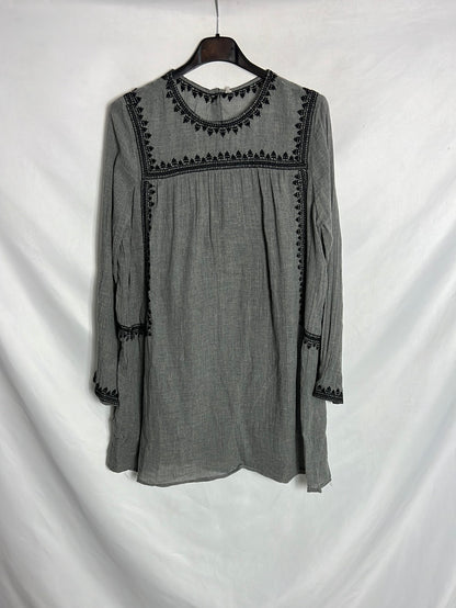 OTRAS. Vestido corto gris bordados. TS