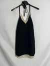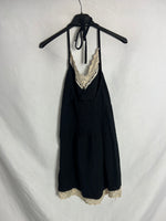 OTRAS. Vestido corto negro detalles crochet. T L (M)