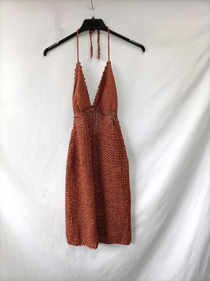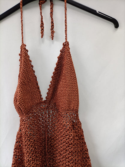 Vestido croché color ocre. Es elástico y tiene convención interior. Largo 87 cm