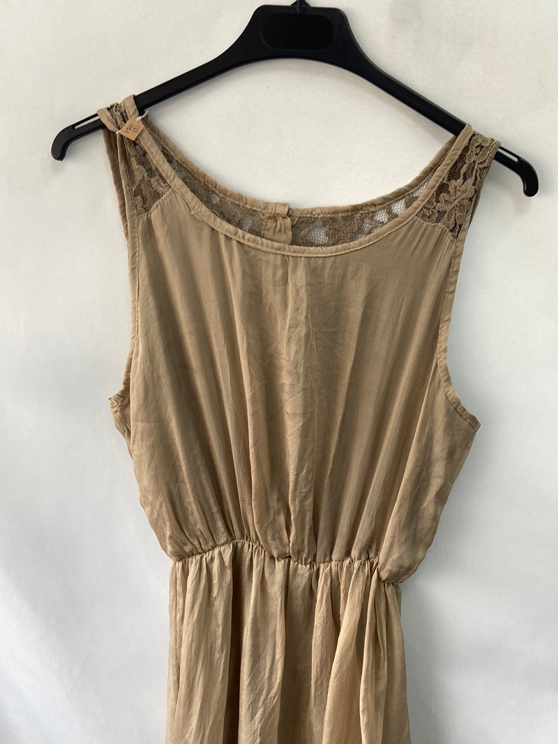 Vestido camel de seda con la espalda de encaje. NUEVO CON ETIQUETA
