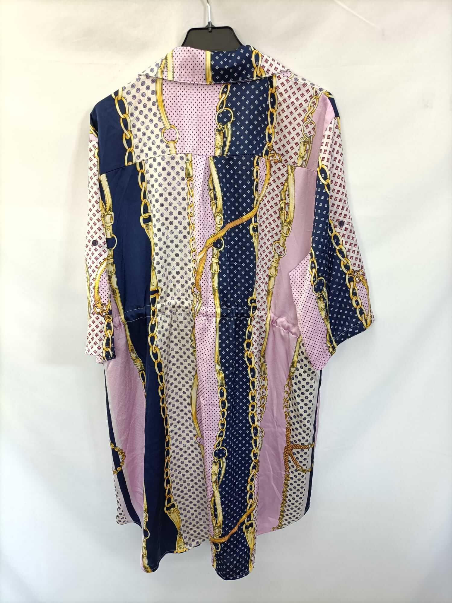 Otras. L/Xl. Vestido corto estampado estilo camisero. Se ajusta en la cintura. No elástico. De sisa a sisa 60 cm largo 106 cm