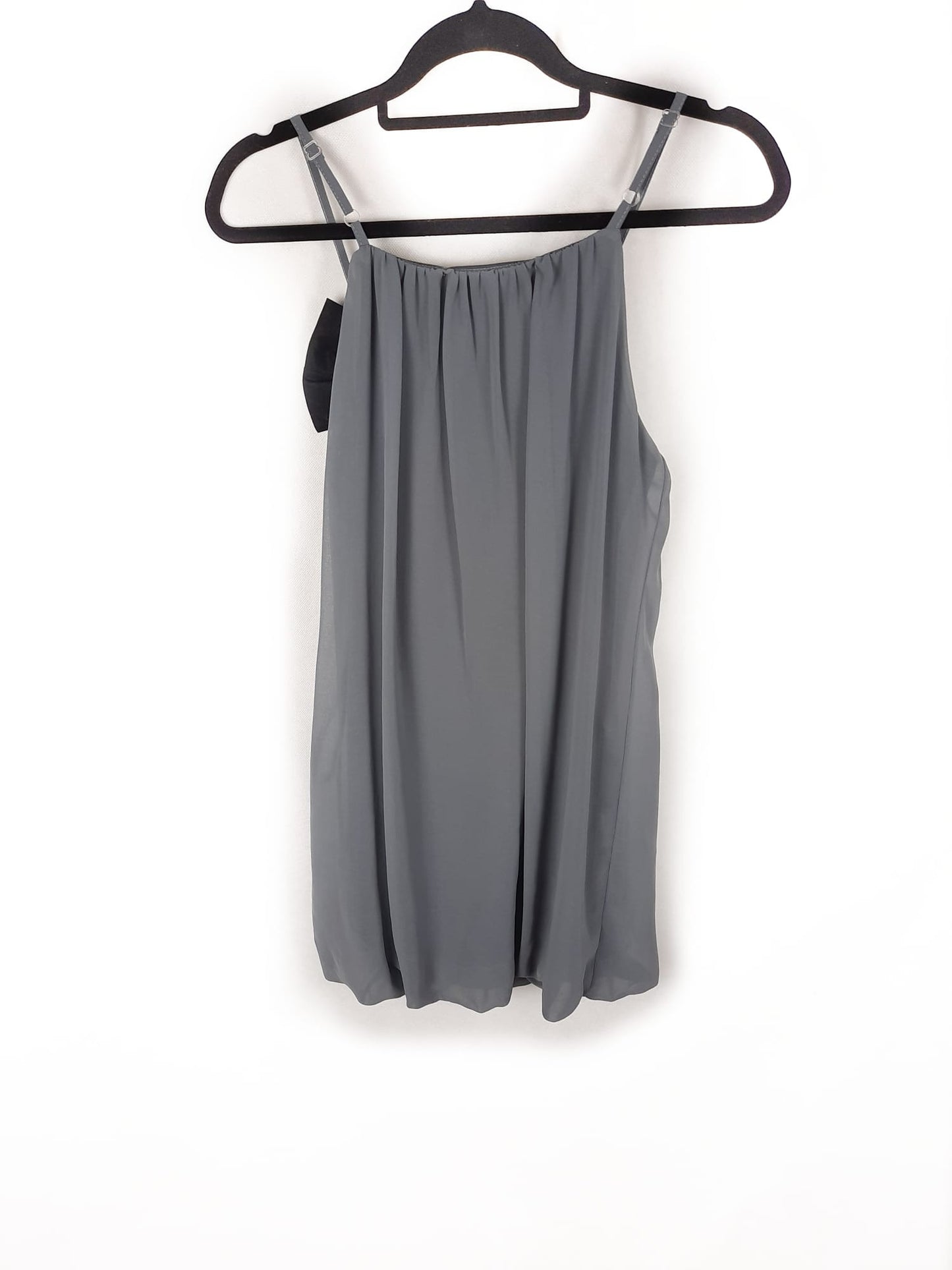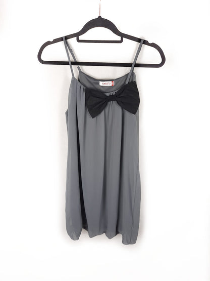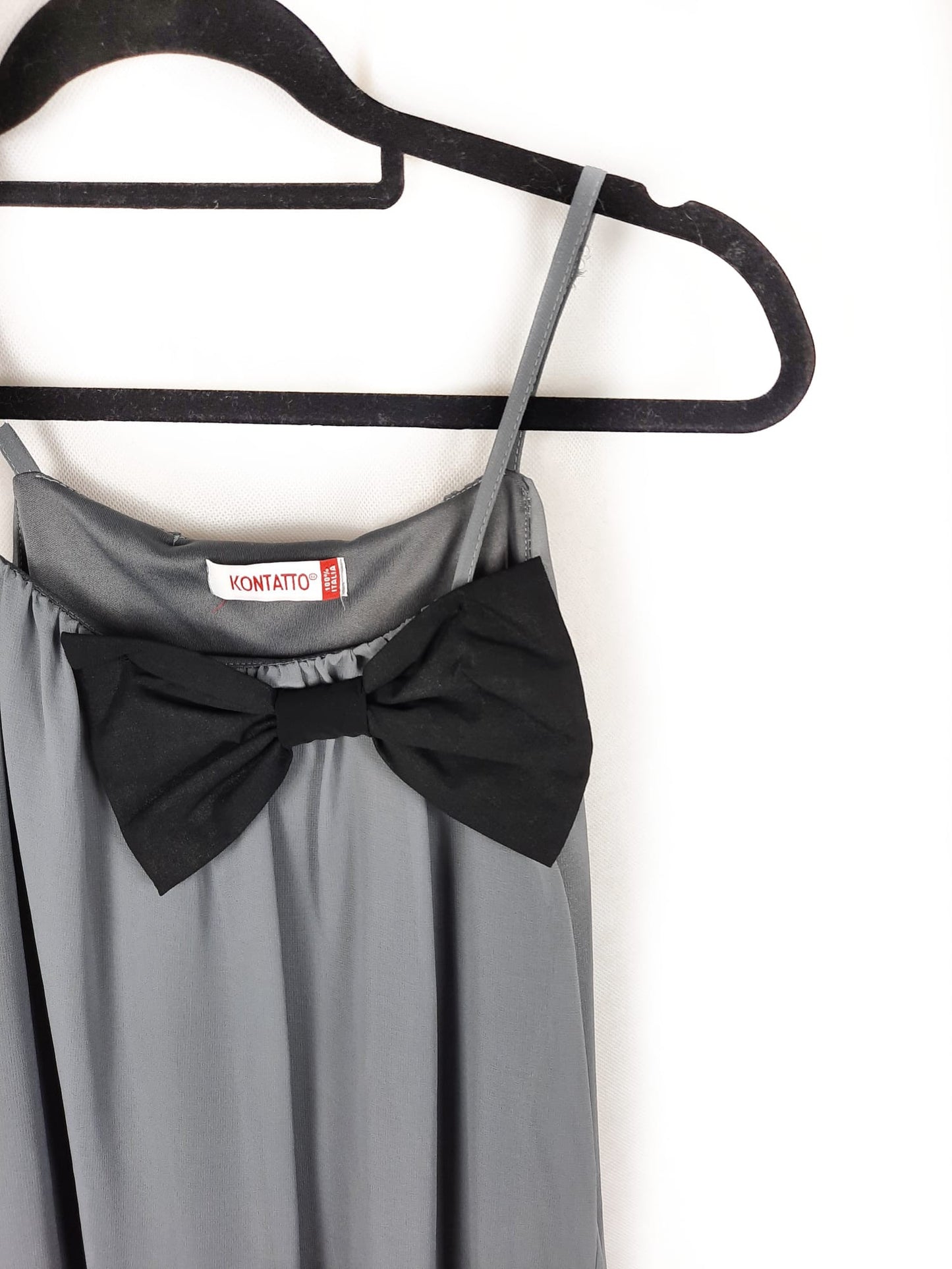 Vestido gris con lazada negra. Tirantes ajustables. De sisa a sisa 46 cm largo 86 cm