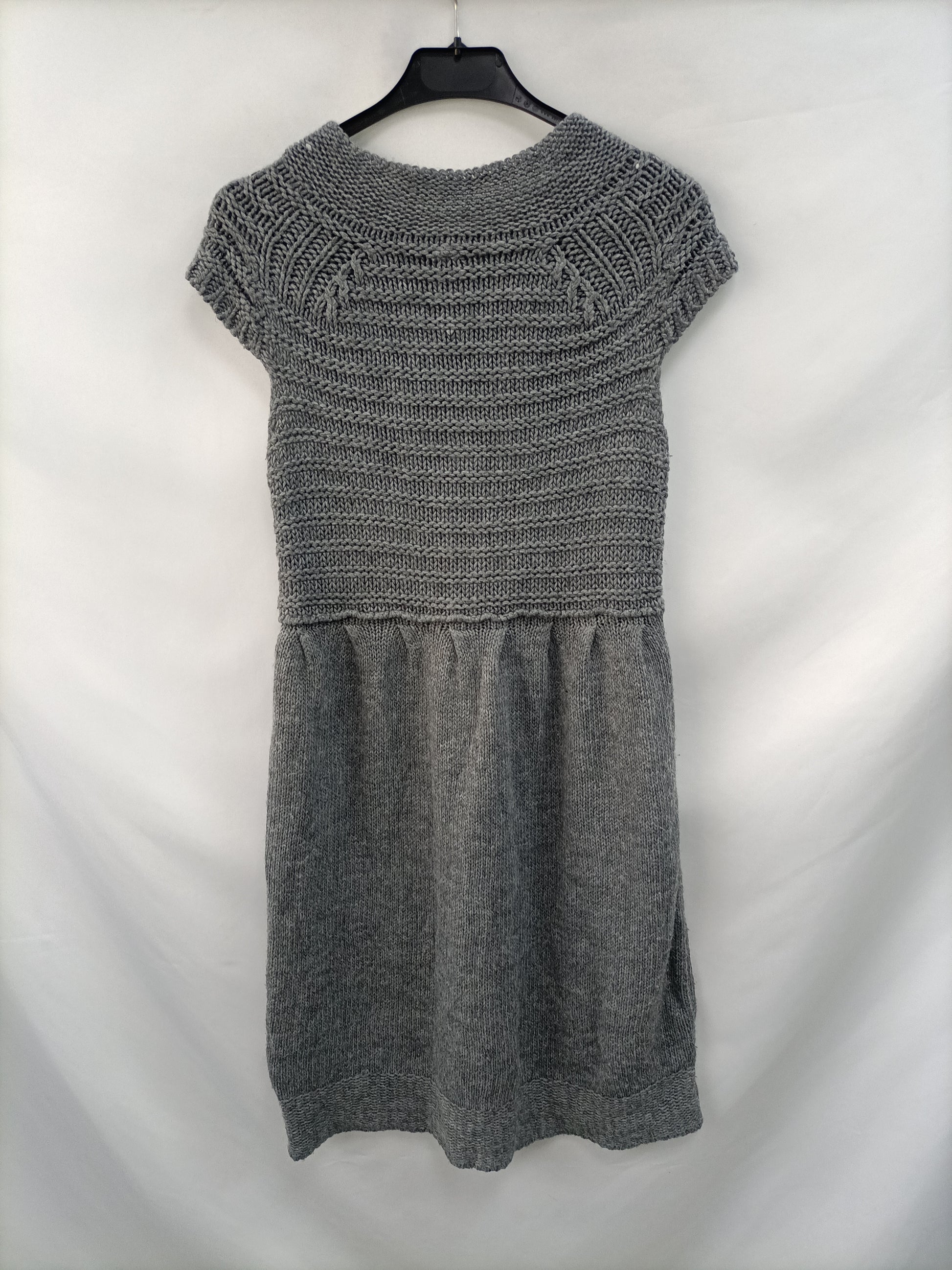 Otras. Vestido de punto gris elástico. Suave. Largo 94 cm