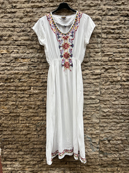 OTRAS. Vestido largo blanco punto de cruz. T XS/S