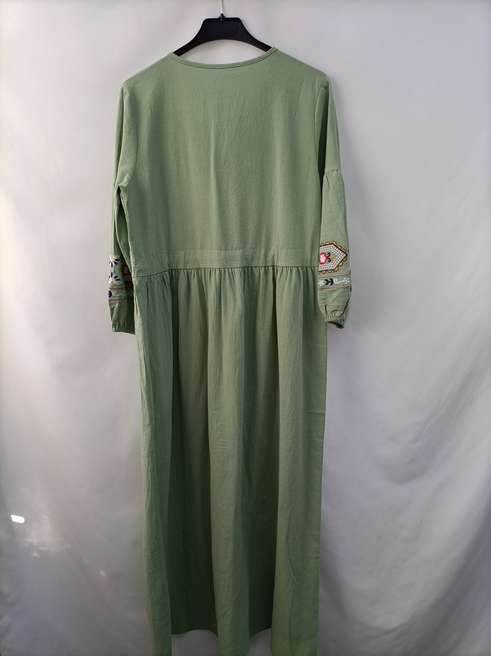 Vestido largo de algodón detalles bordados. De sisa a sisa 48 cm largo 134cm