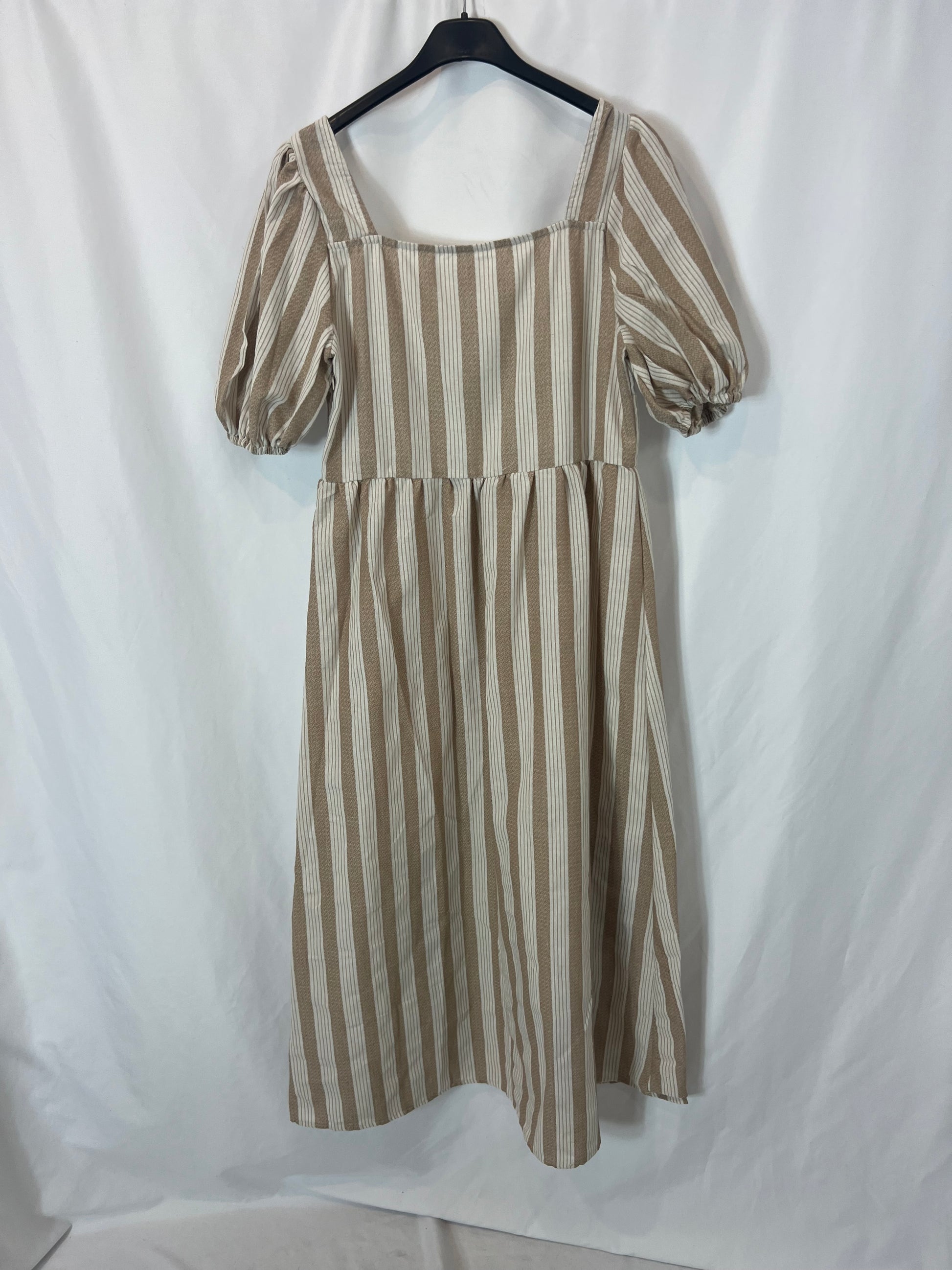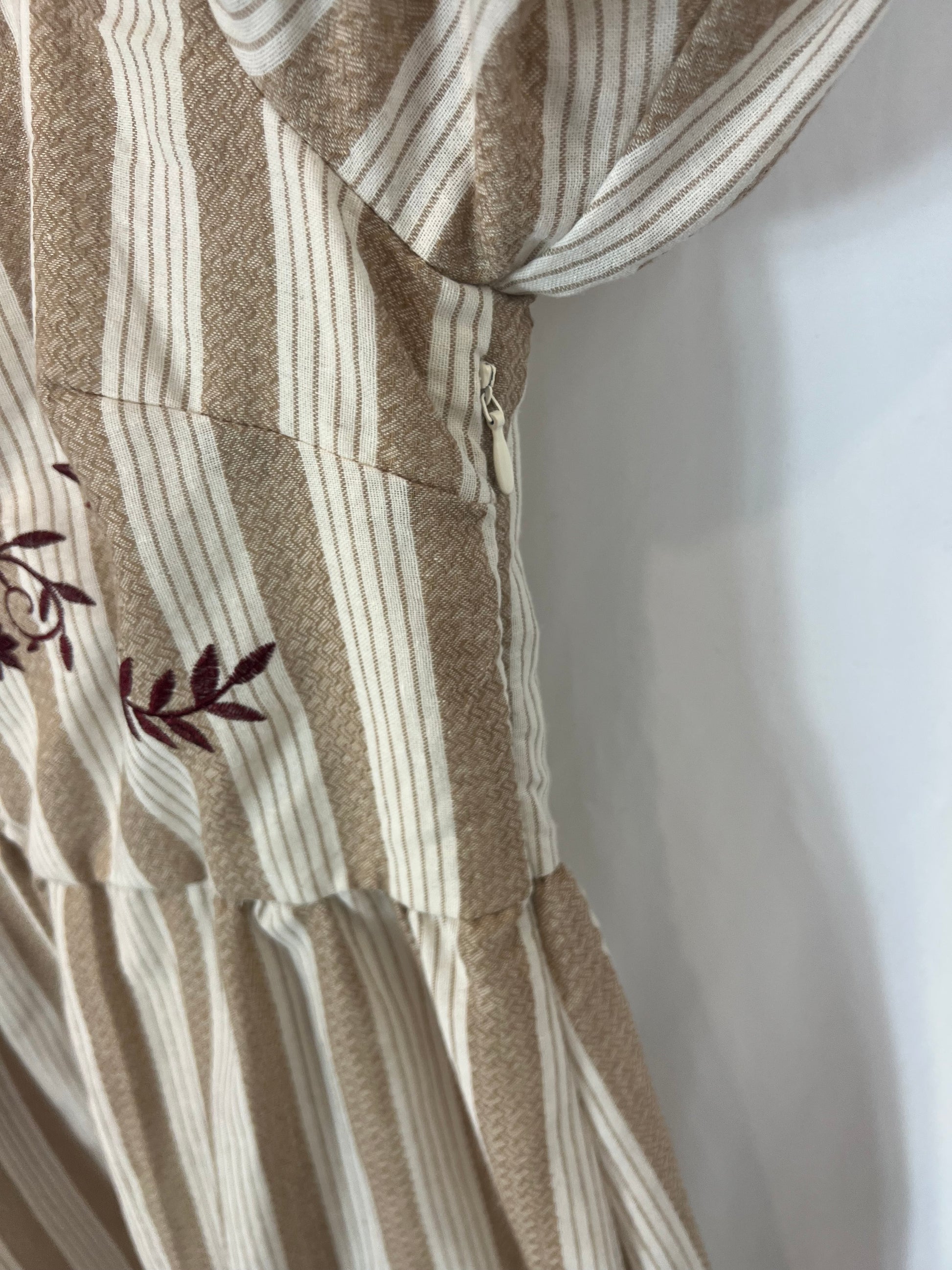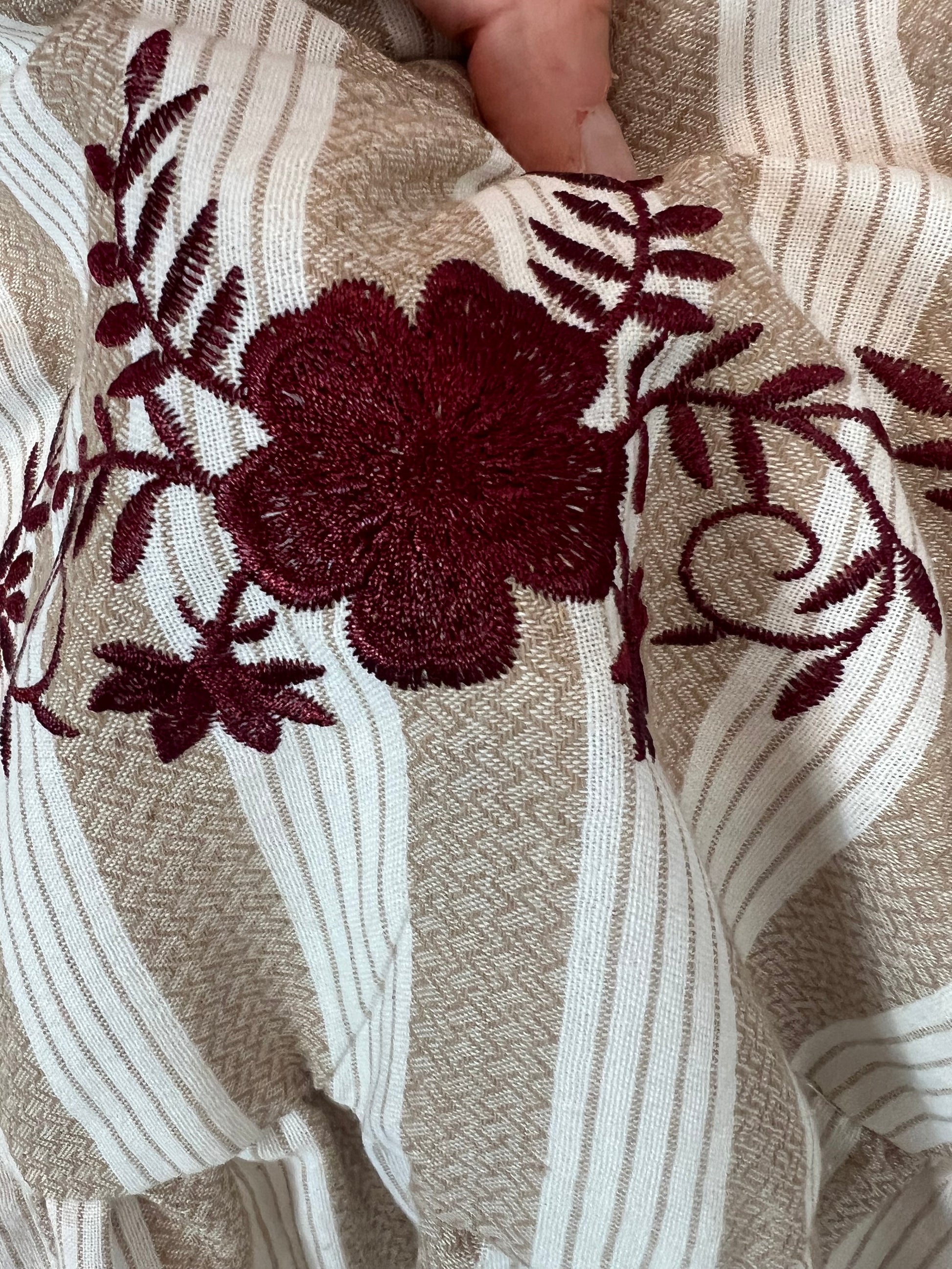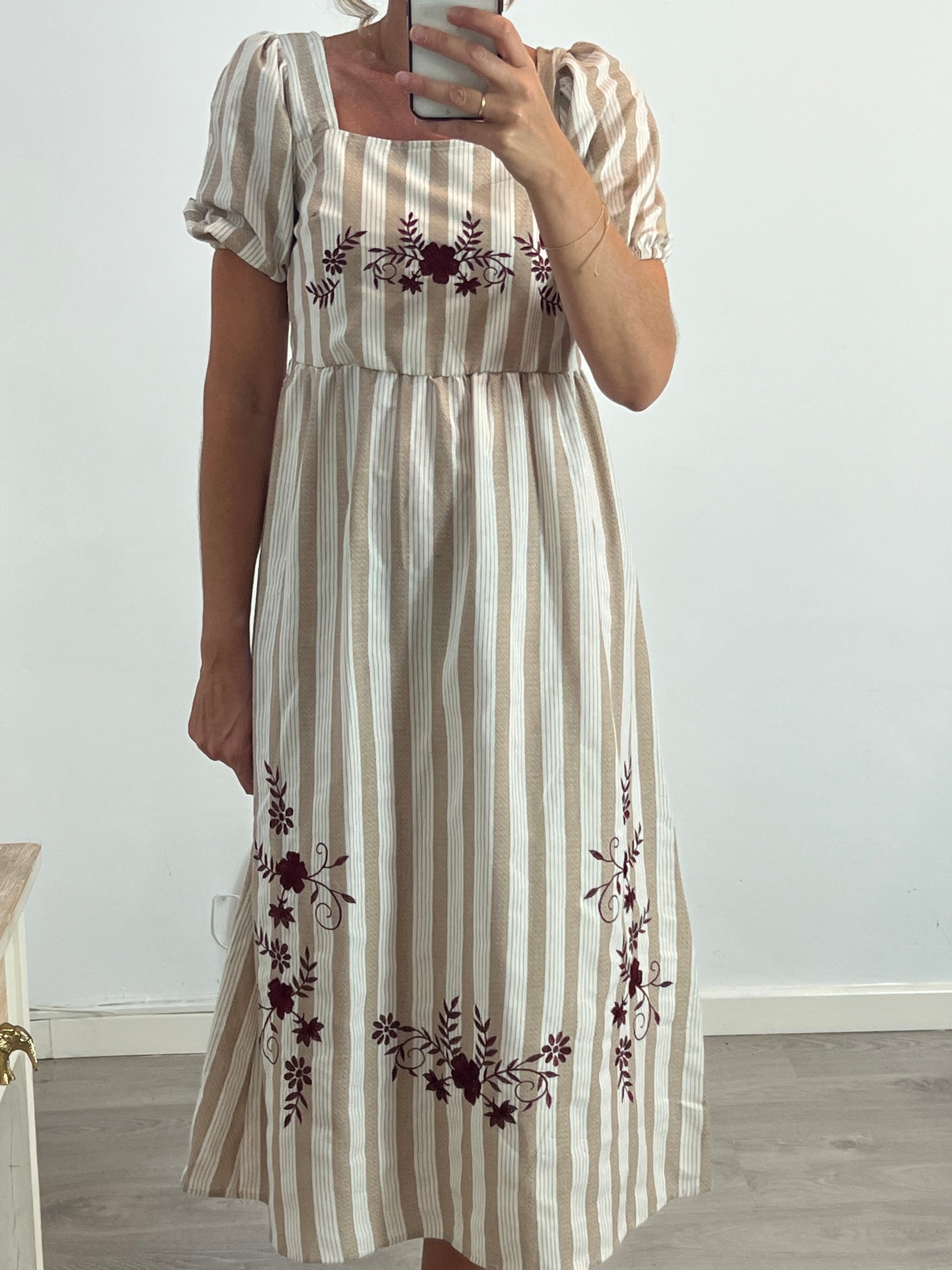 Vestido largo rayas bordados en burdeos. De sisa a sisa 43cm, largo 123cm