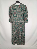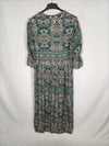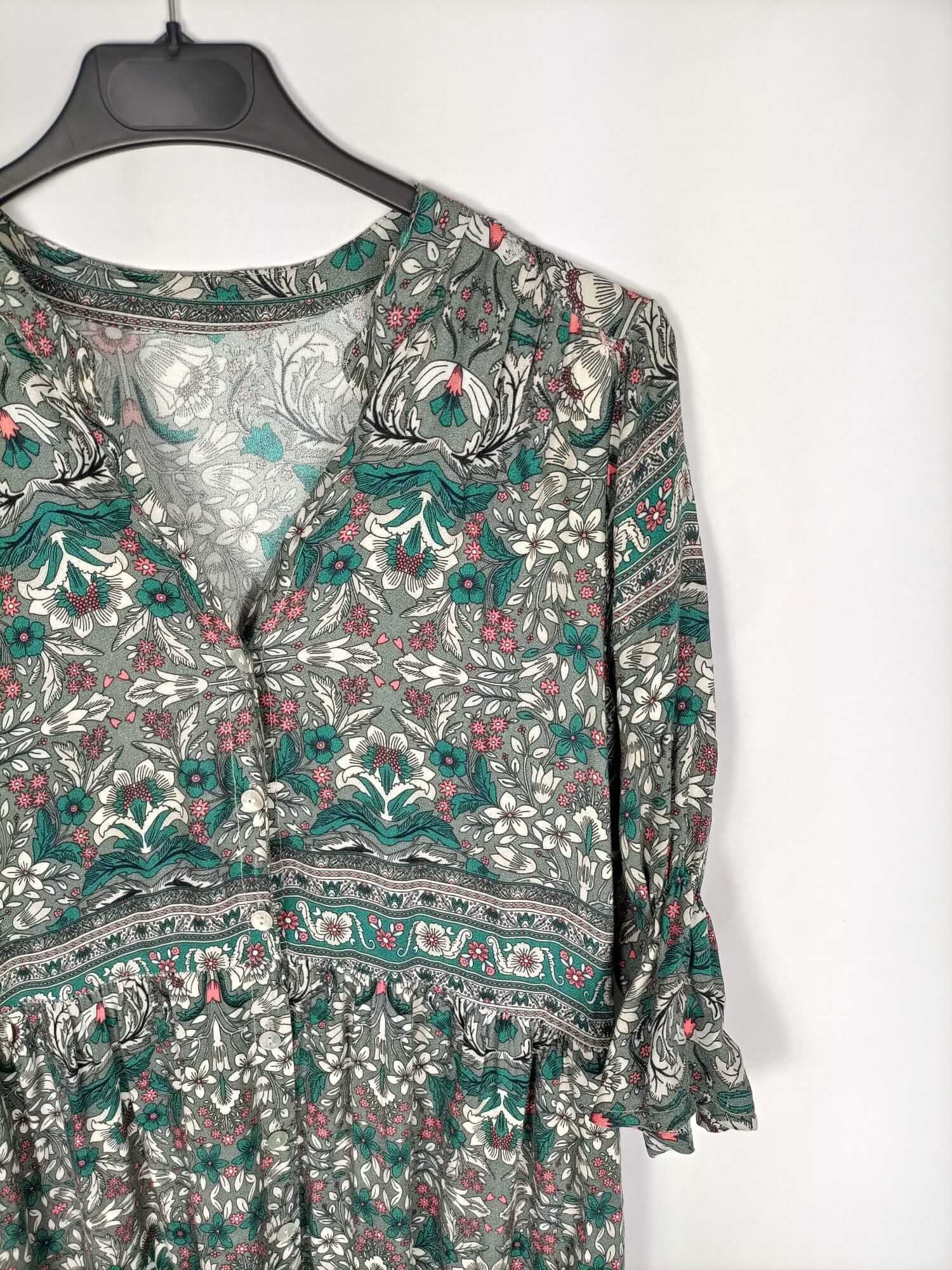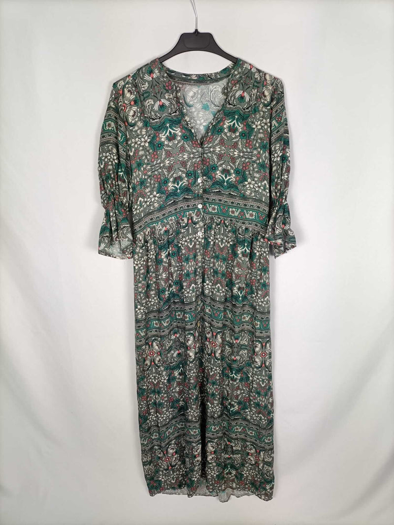 Otras. vestido largo abotonado estampado en tonos verdes con flores. Fluido y fresquito. Elástico en las mangas. De sisa a sisa 49 cm largo 139 cm