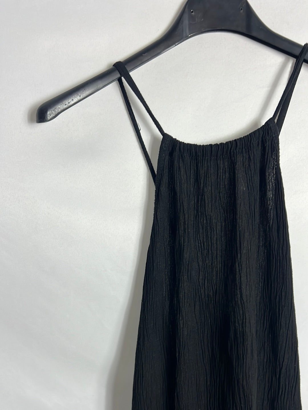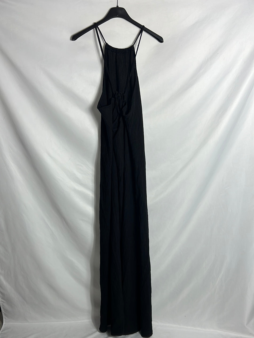 Vestido largo negro escote halter y espalda baja. Largo 140cm