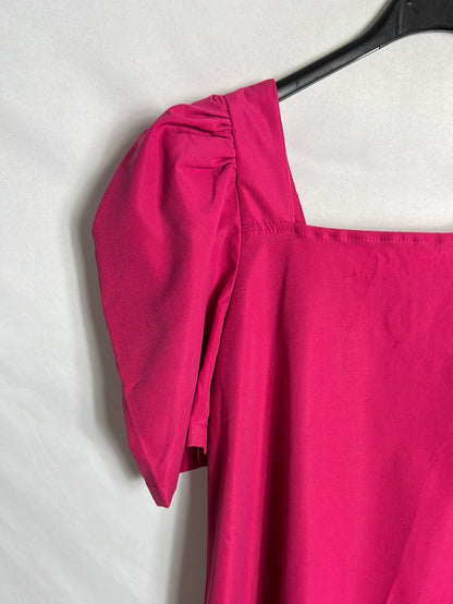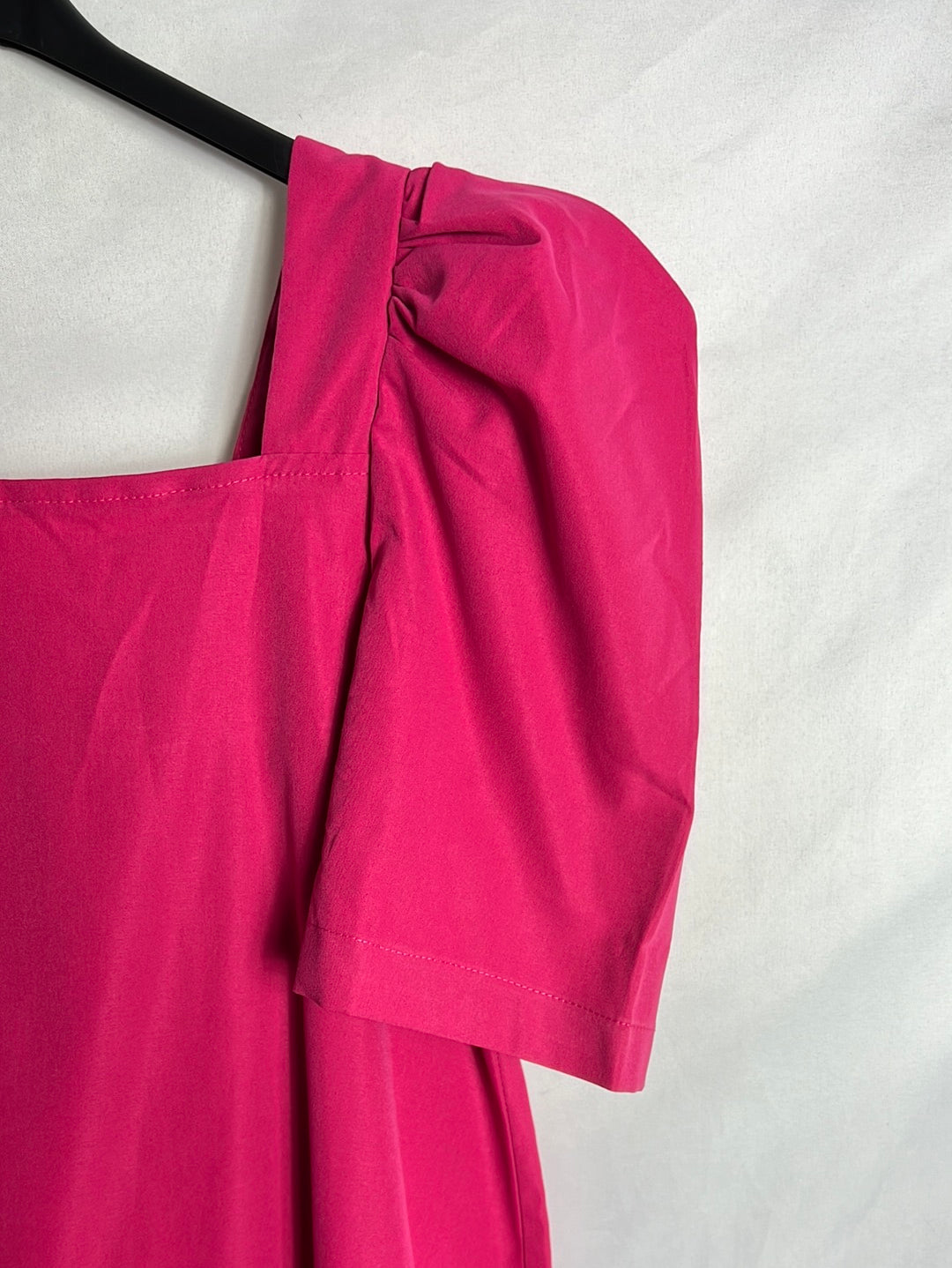 vestido largo rosa con volantes . Largo 121cm, de sisa a sisa 37cm elastica