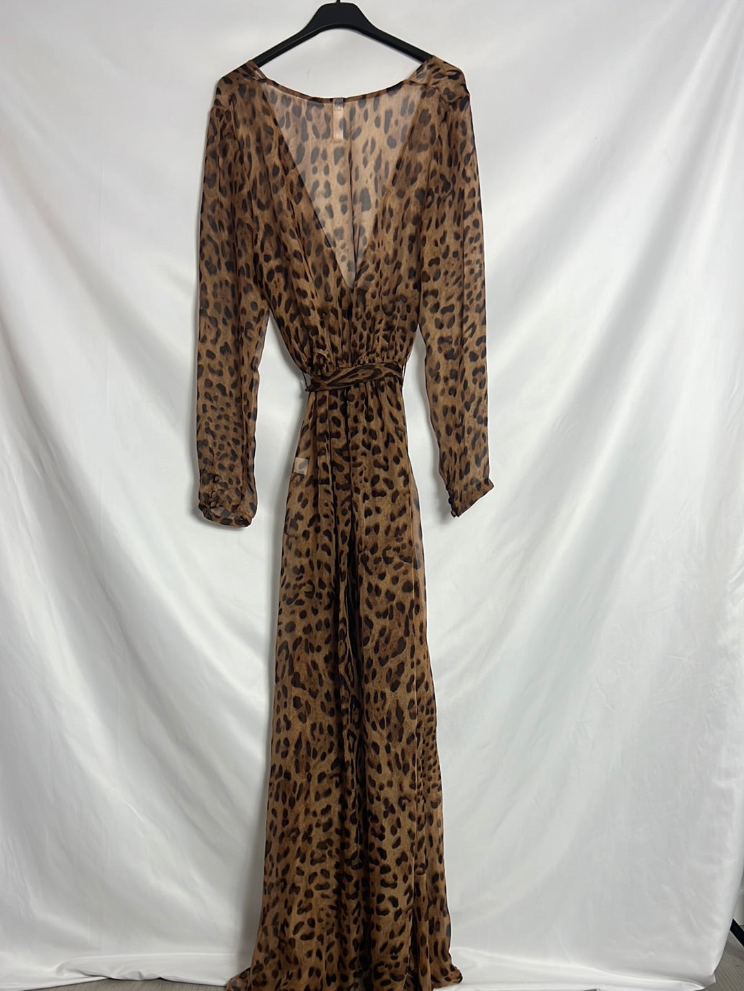 100% algodón. Vestido largo semi transparente animal print Tejido no elástico