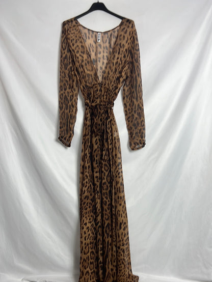 OTRAS. Vestido largo semi transparente animal print T S