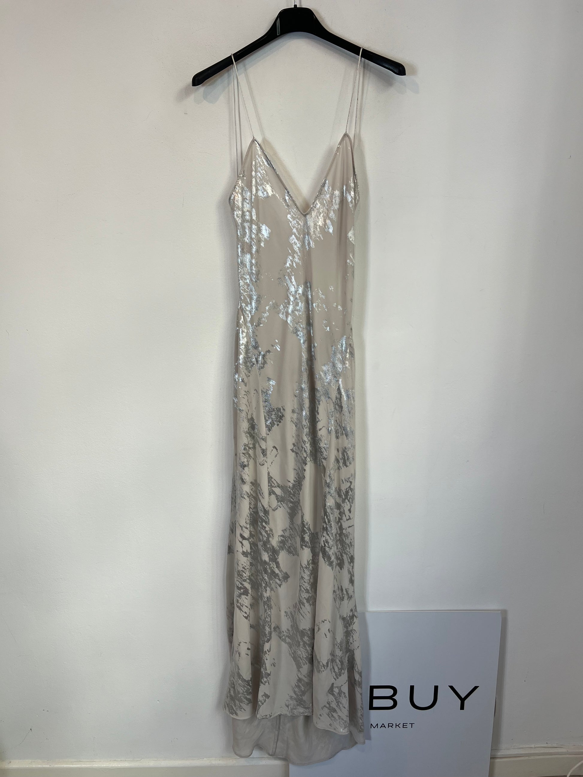 Vestido largo efecto tie dye plateado. de sisa a sisa 40 cm largo 120 cm.