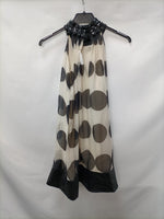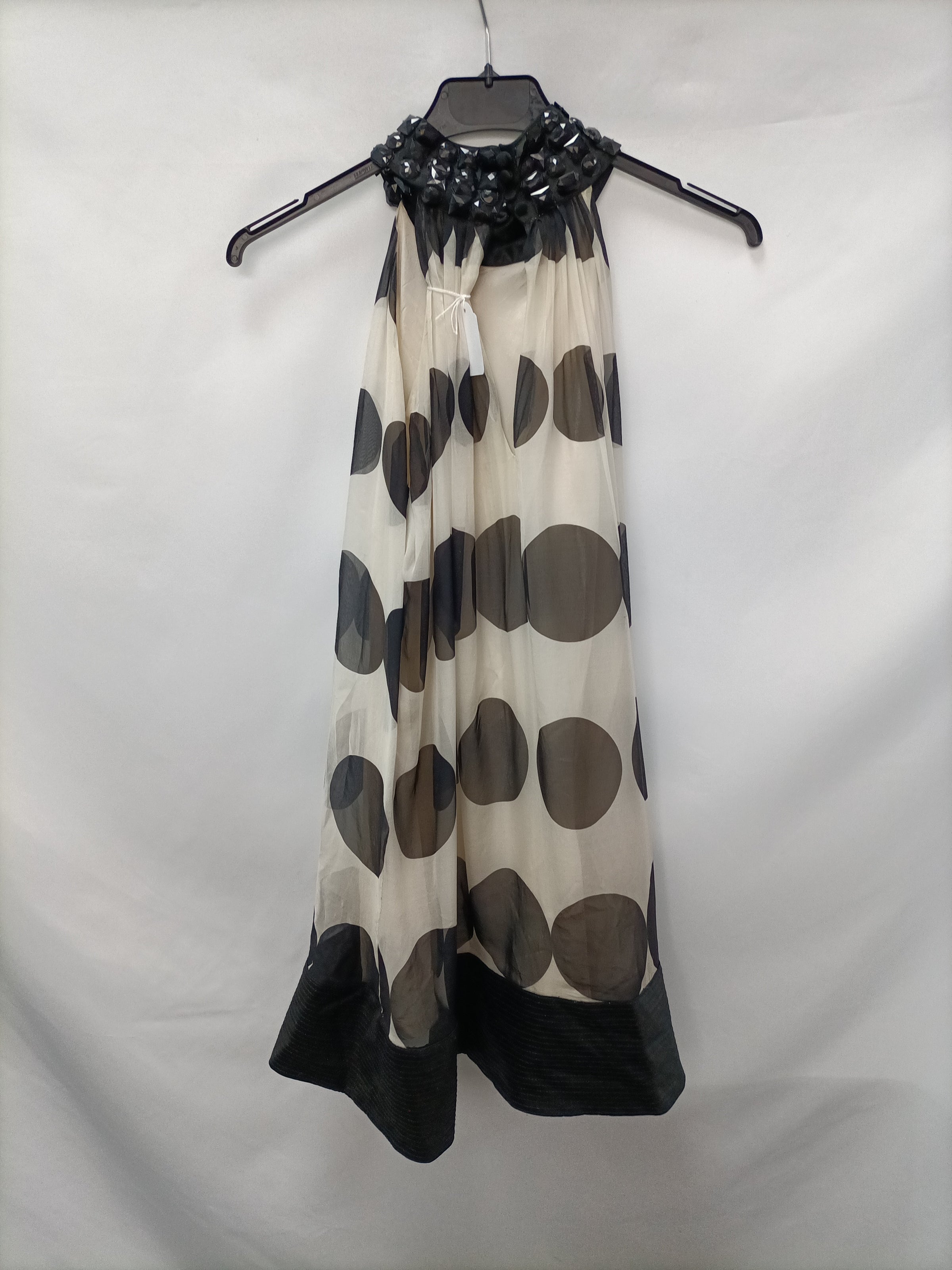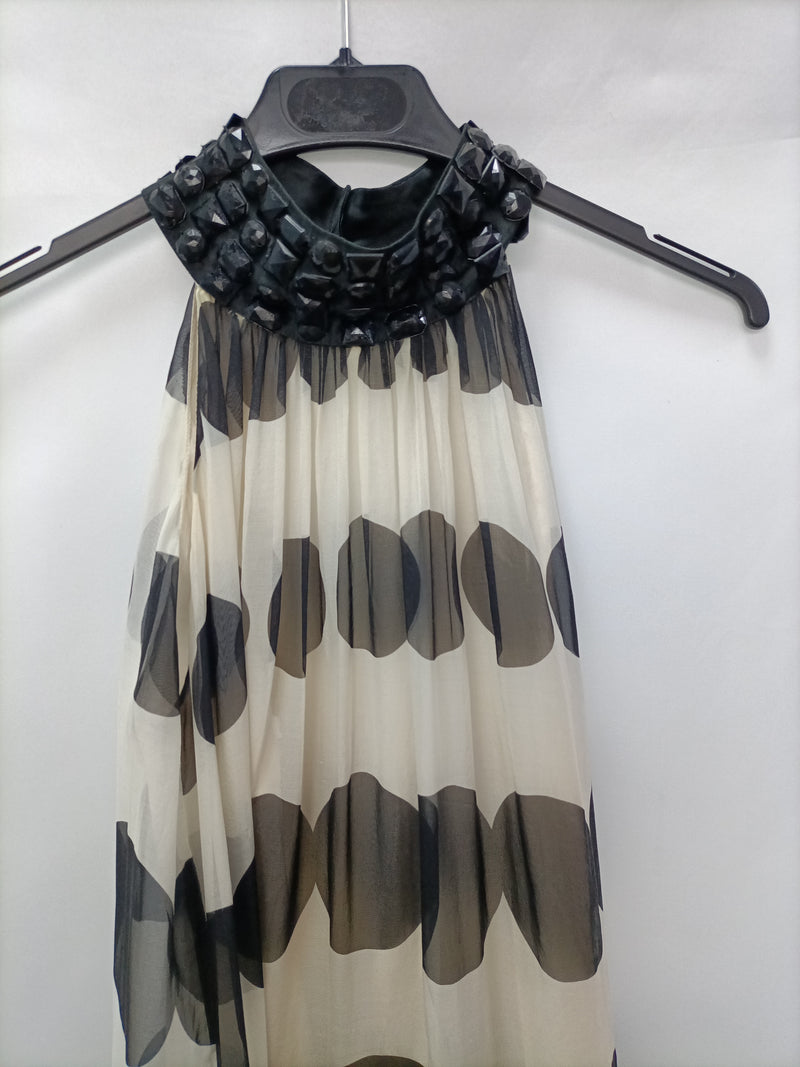 Vestido fiesta de seda con estampado de lunares y cuello halter con pedrería