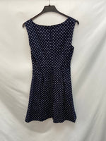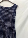 Vestido azul de lunares con la parte de abajo de tablas. No elástico. De sisa a sisa 41 cm largo 80 cm