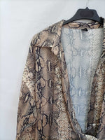 Otras. S. Vestido cruzado midi con estampado animal print. Fluido. Mangas estilo murciélago. Oversized. Cintura 40 cm largo 123 cm