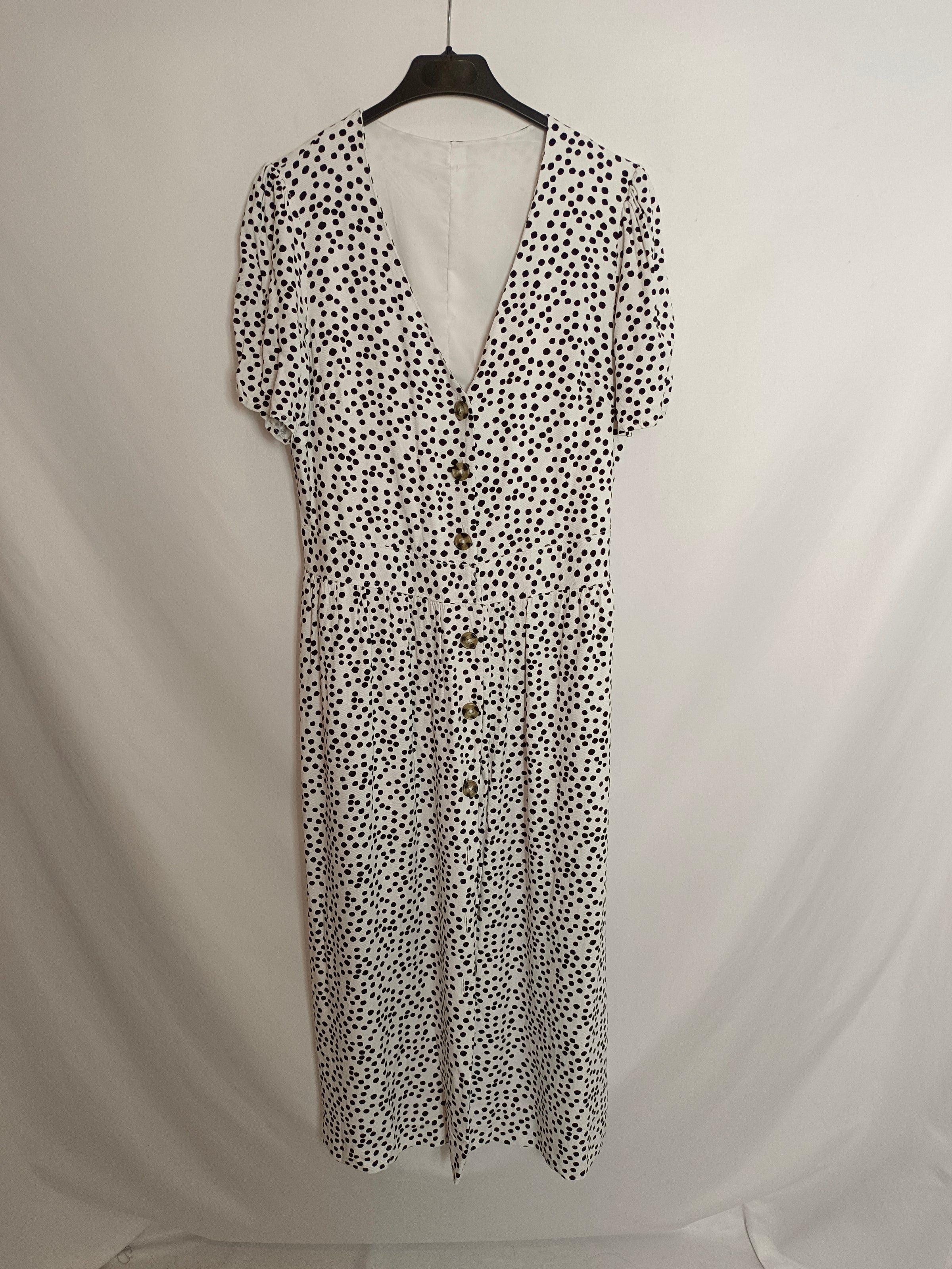 OTRAS. Vestido midi blanco lunares T.u(s/m)