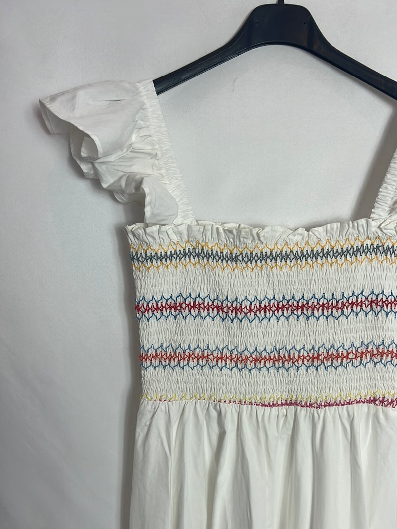 OTRAS. Vestido midi blanco nido de abeja. T S