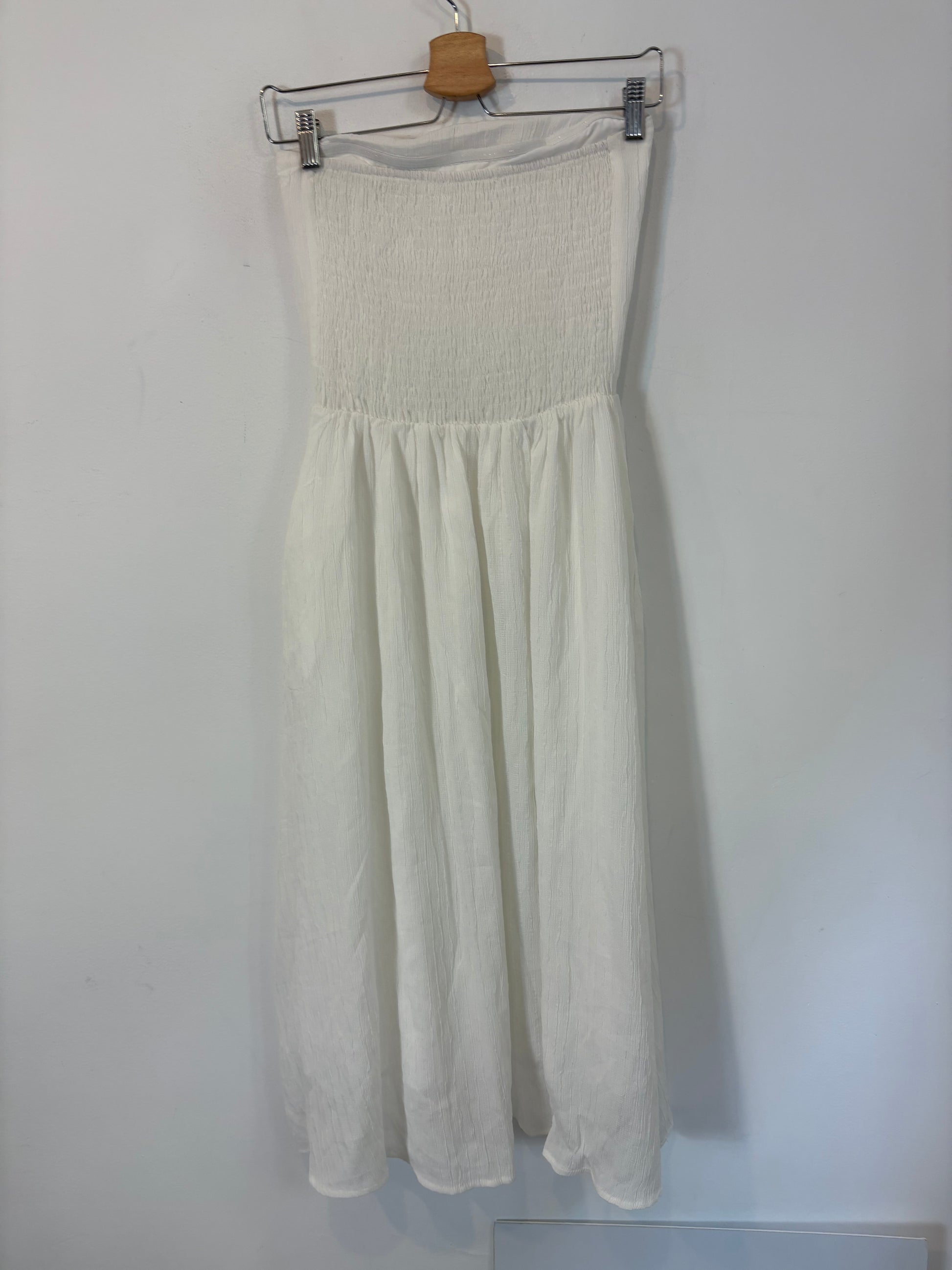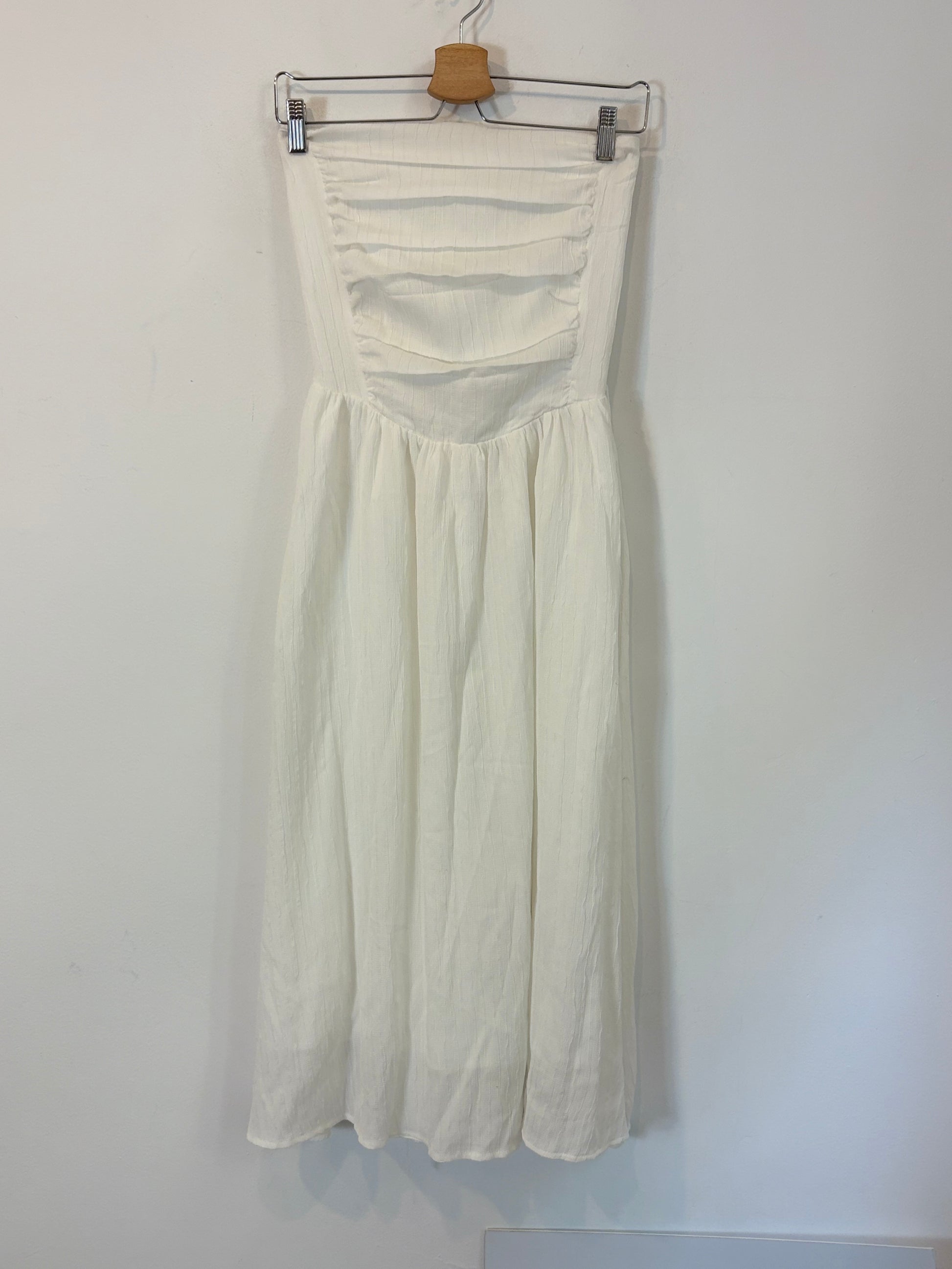 OTRAS. Vestido midi blanco palabra de honor. T S