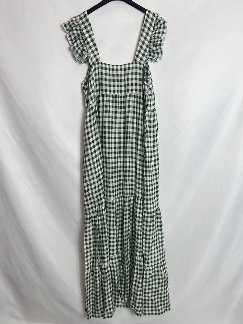 OTRAS. Vestido midi cuadros vichy verdes. T S/M