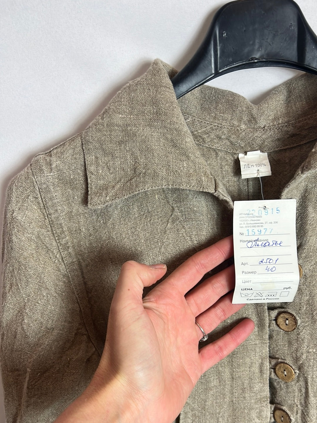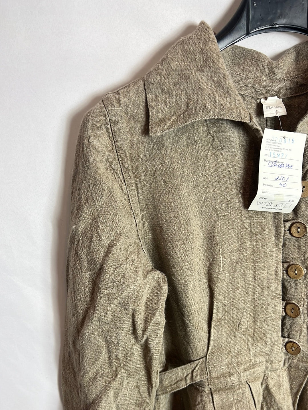 NUEVO CON ETIQUETA. Vestido midi Lino verde efecto desgastado. T 40(36)Hombros 36cm, de sisa a sosa 43cm,largo 136cm