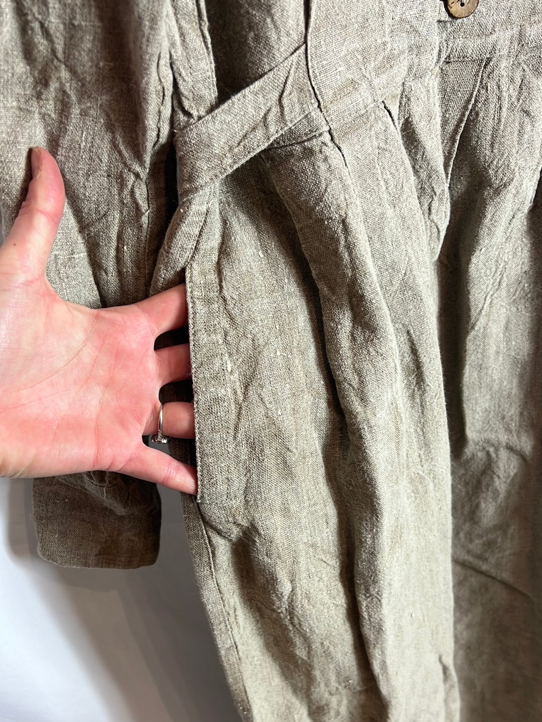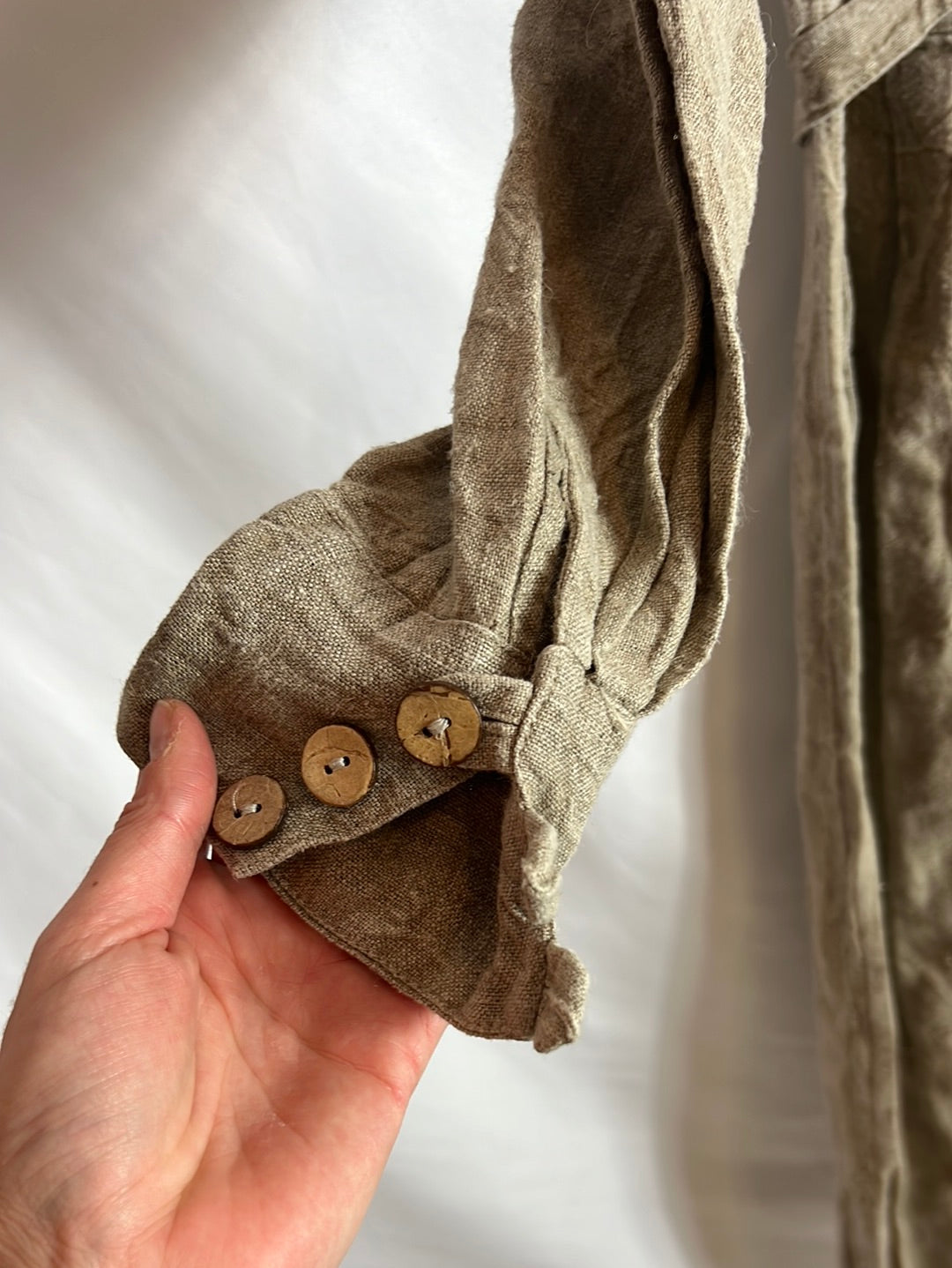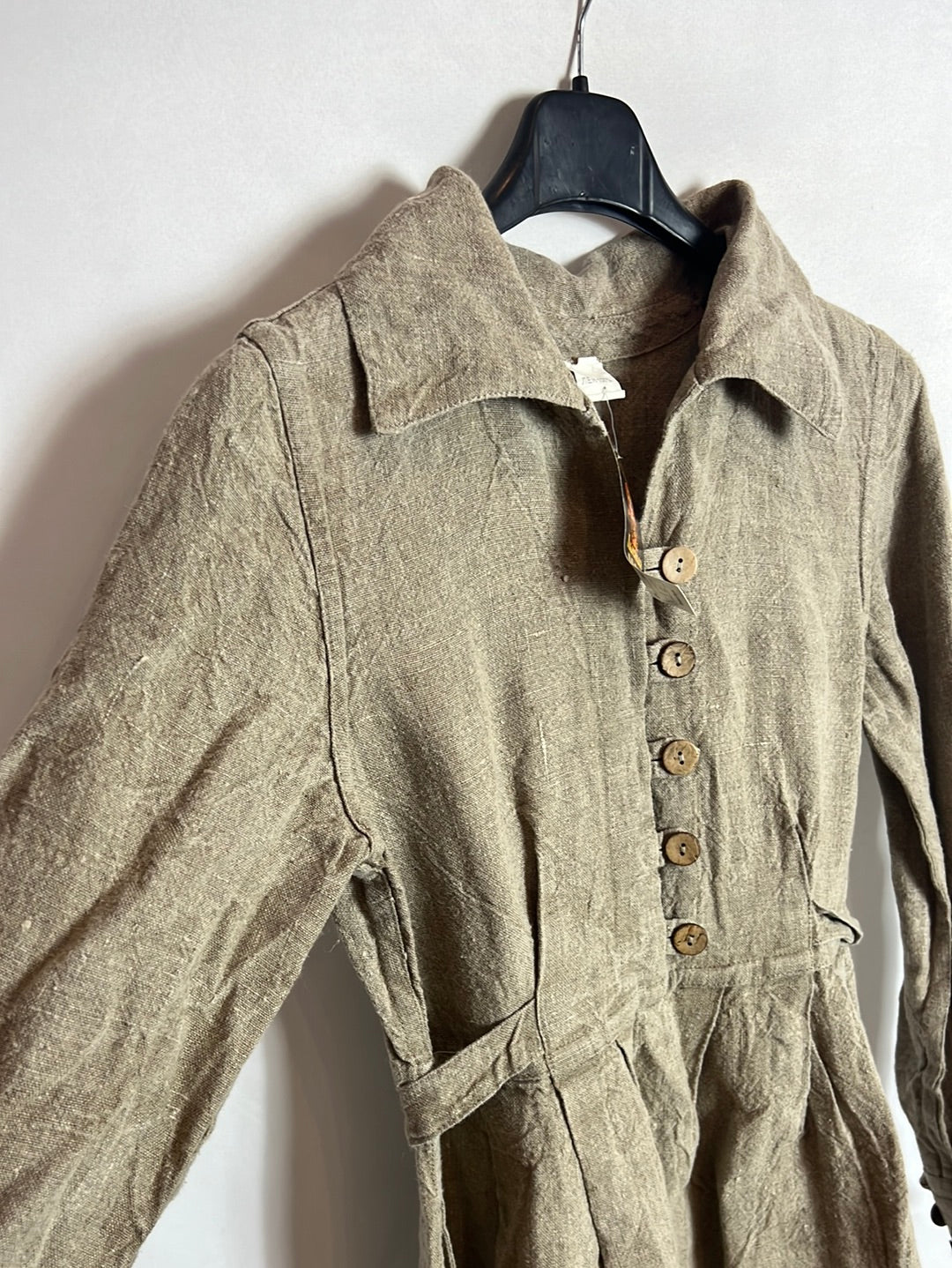 OTRAS. Vestido midi Lino verde efecto desgastado. T 40(36)