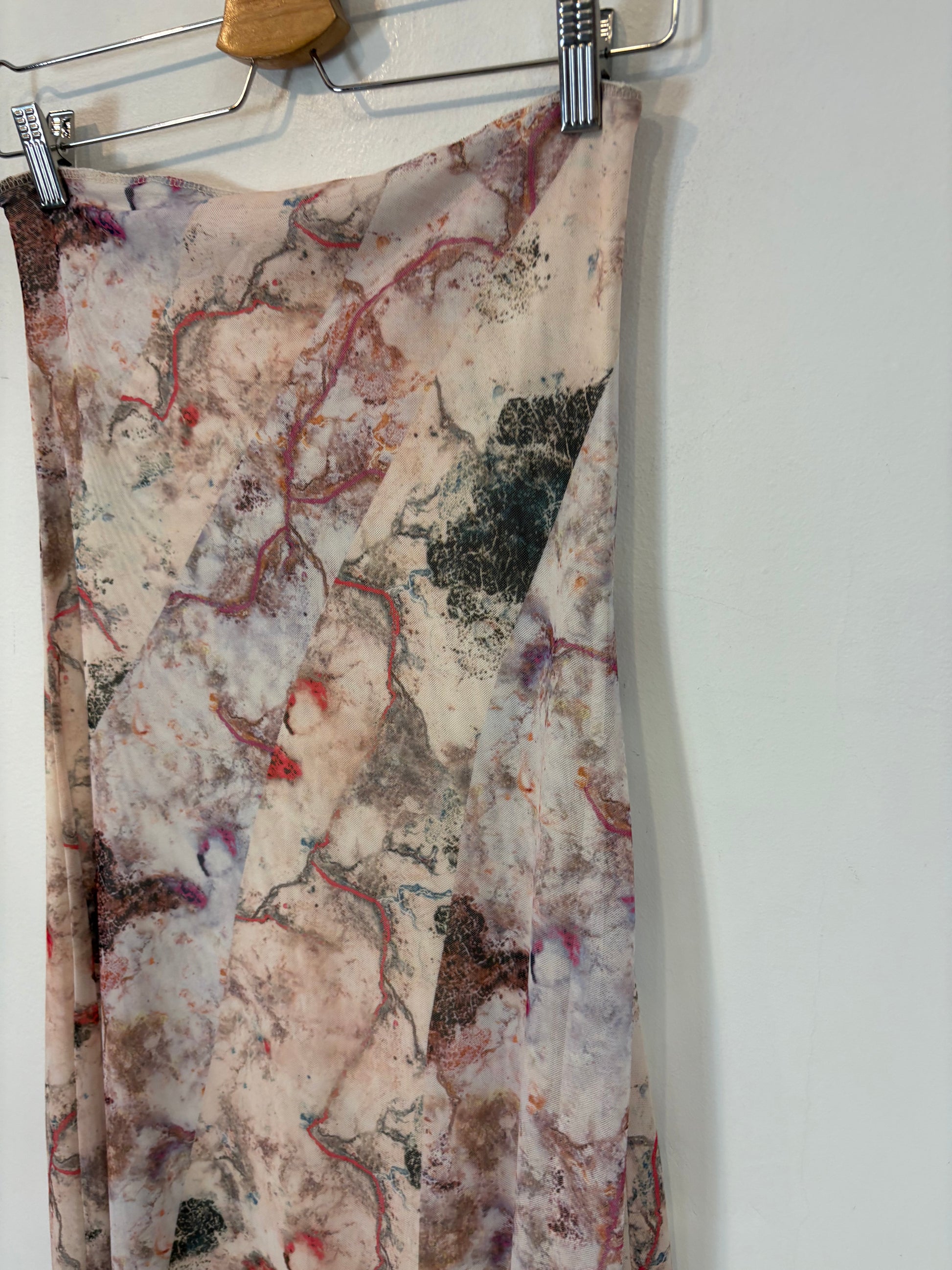 Vestido midi tul elástico. Espalda 38 cm, largo 122 cm. Semi elástico