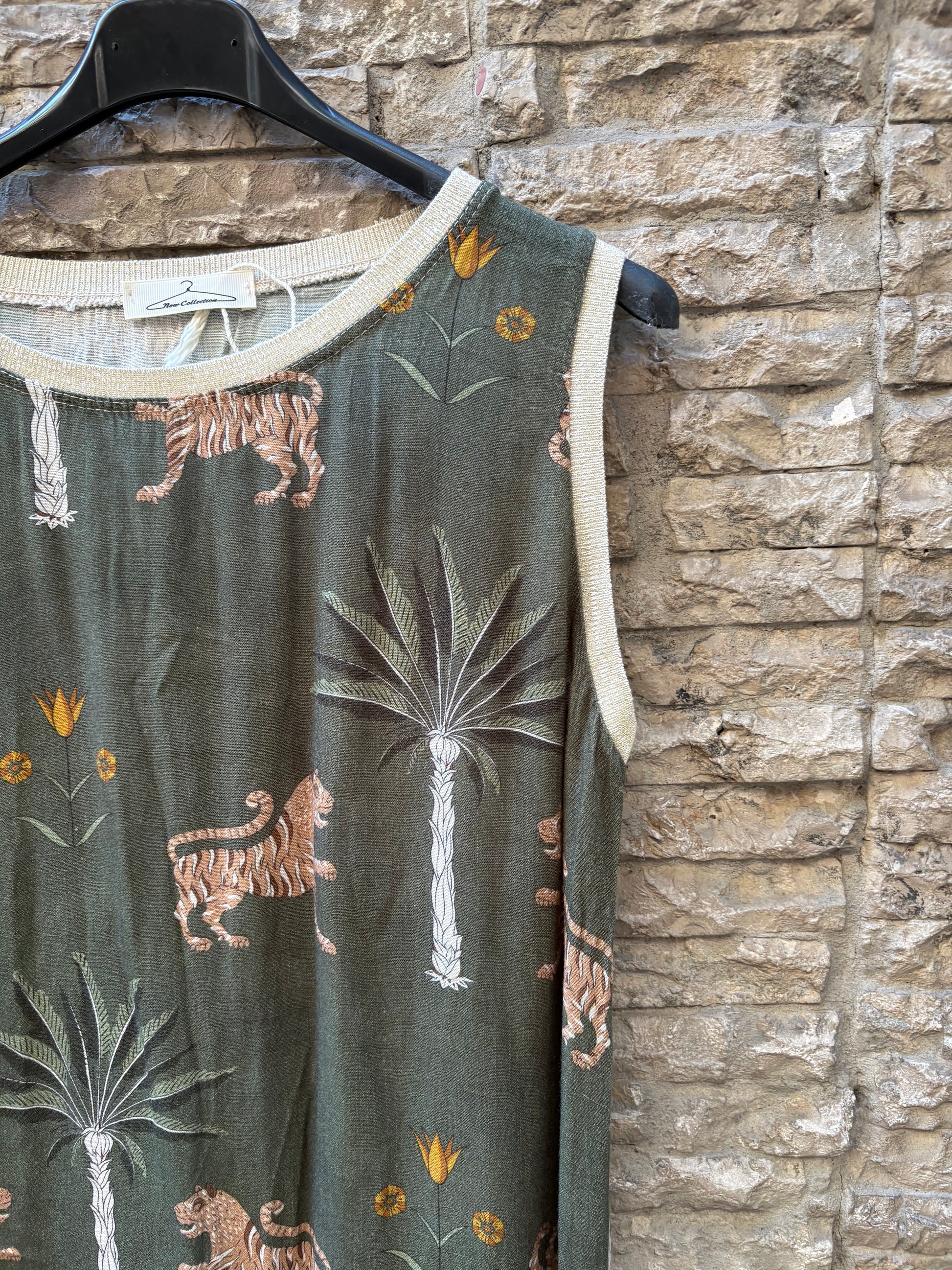 Vestido midi tigres. Espalda 49 cm , largo 124 cm