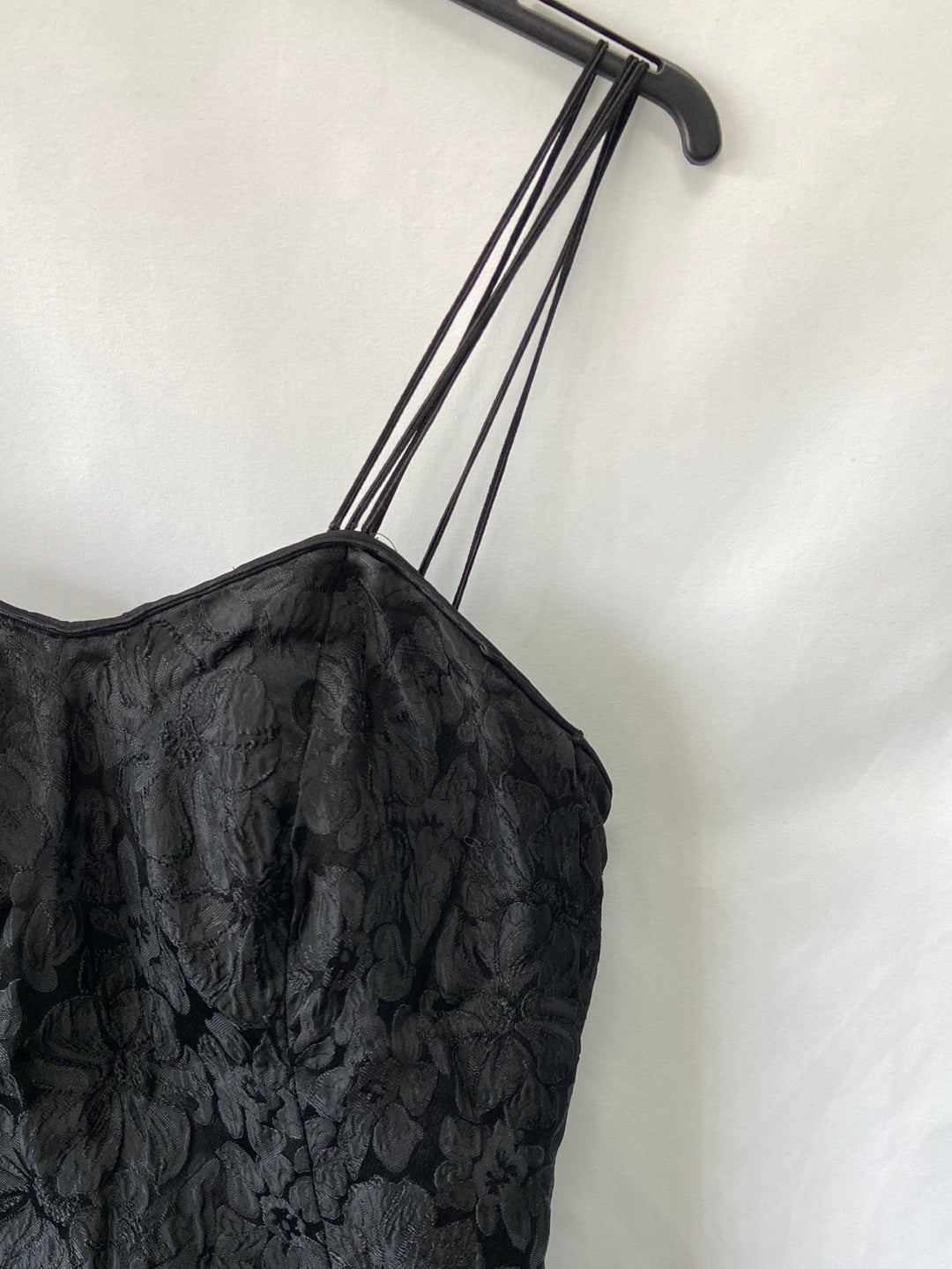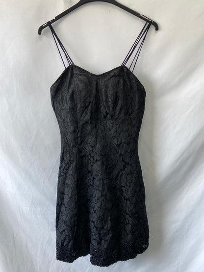 Vestido negro estructurado textura. No elástico con cremallera trasera. De sisa a sisa 43 cm largo 90 cm cintura 38 cm