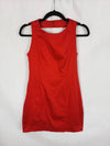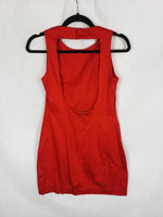Vestido rojo ajustado con espalda al aire. Se abrocha con cremallera trasera y es semielastico. Largo 80 cm