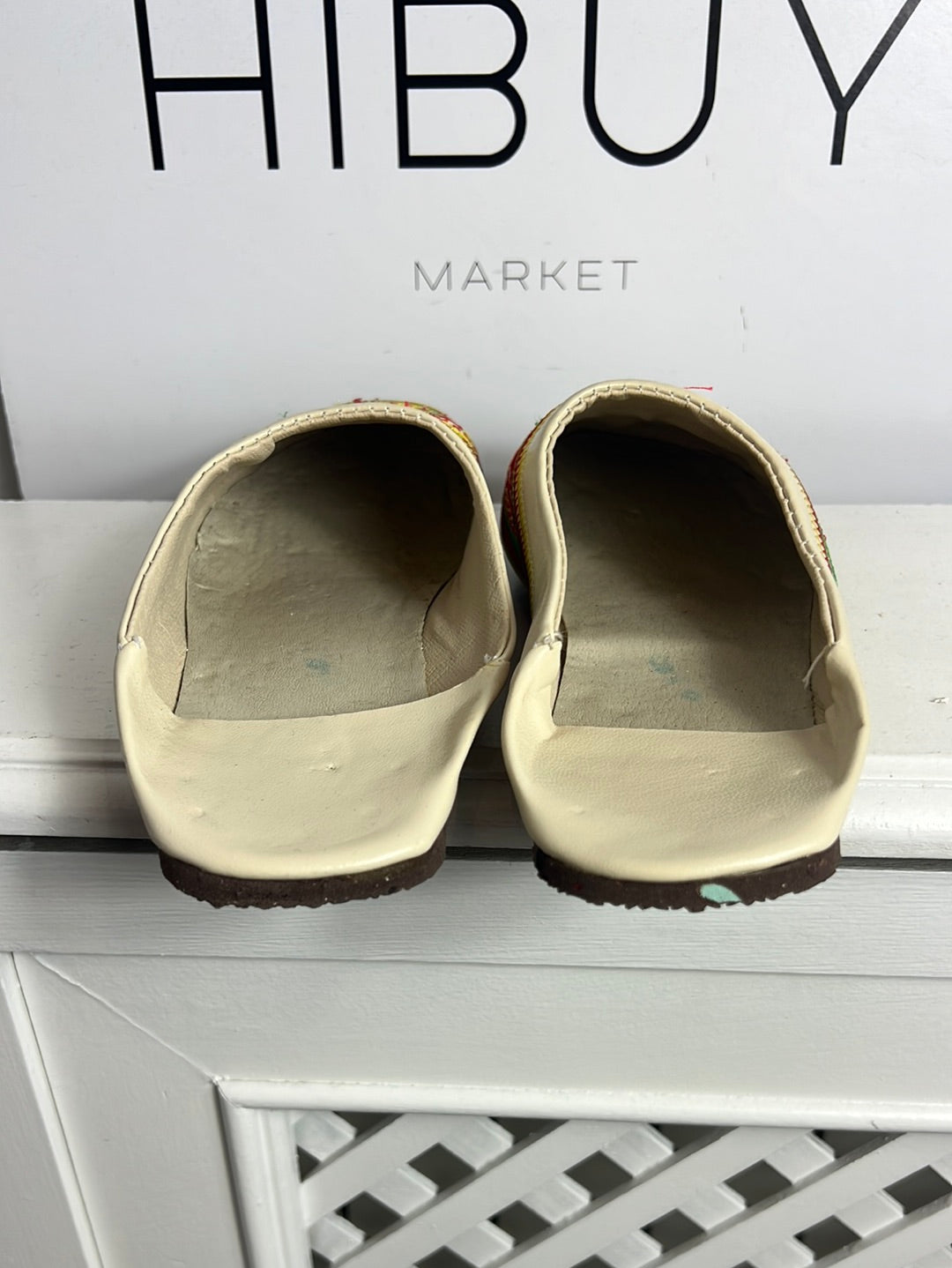 Zapatillas beiges hilos colores. Tara: tiene una mancha en la suela( foto)