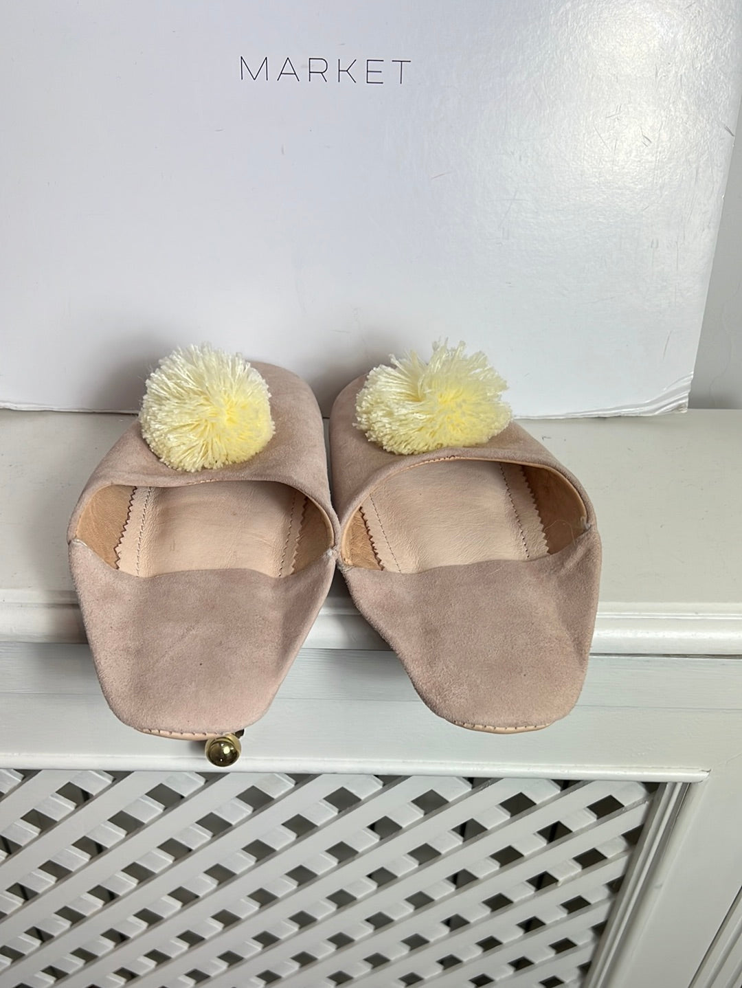 NUEVAS SIN USO. Zapatillas pom pom .Parace piel
