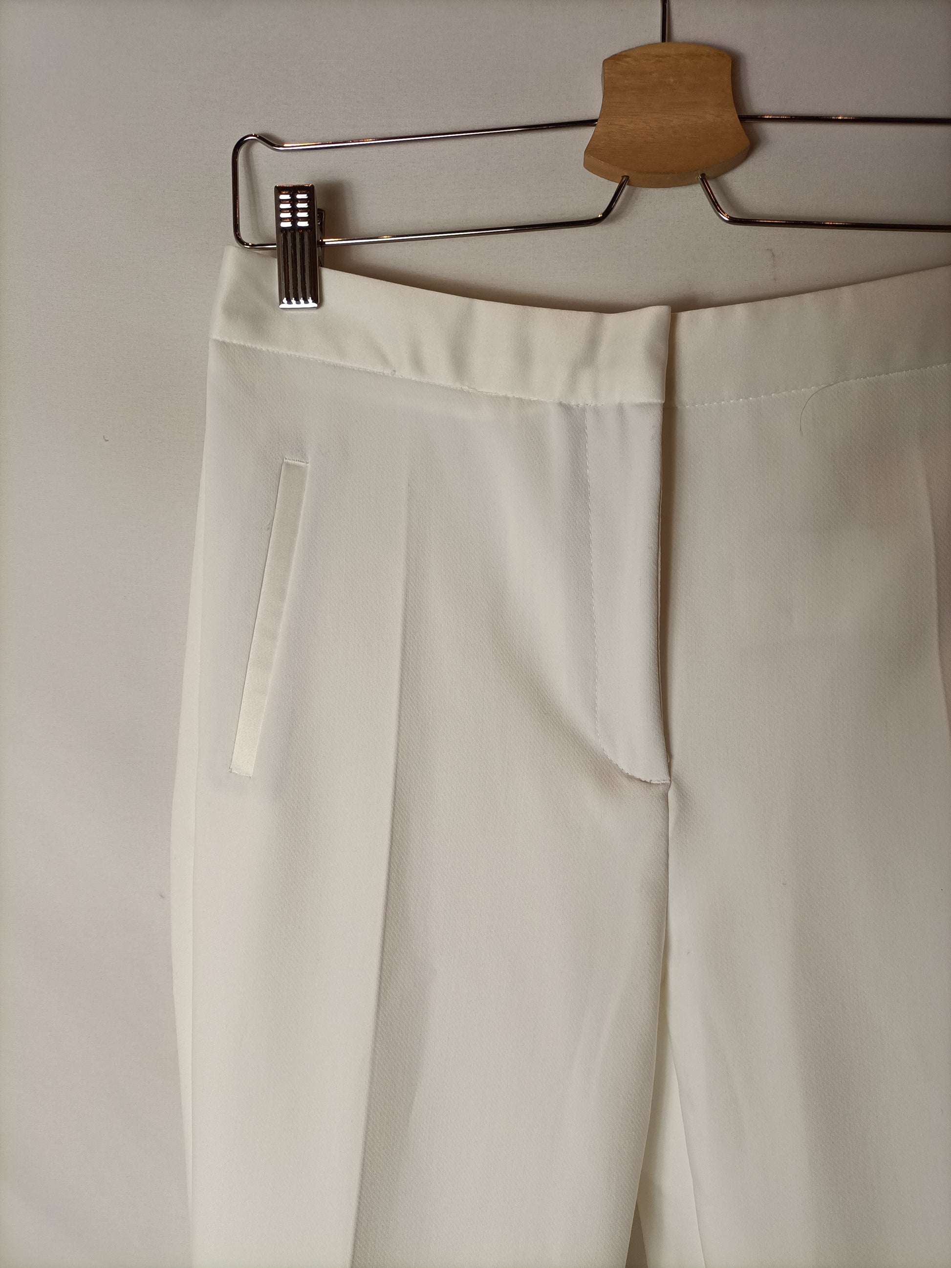 OTRAS (zara). Pantalón blanco detalles raso T.u(38) tara