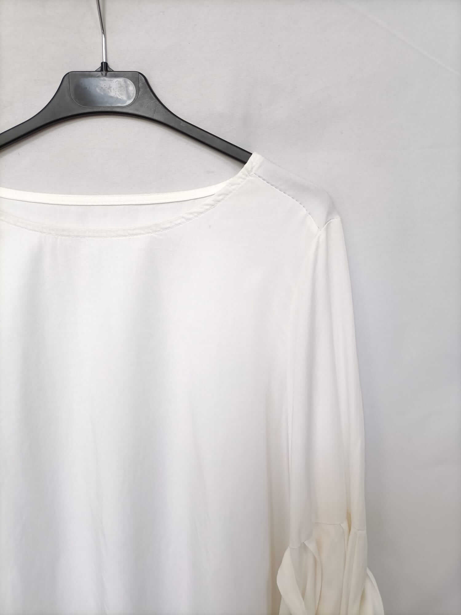 Otras. Tu (m/L). Blusa blanca básica con lasa gas acampanadas con lazada. No elástica. De sisa a sisa 52 cm largo 64 cm
