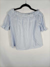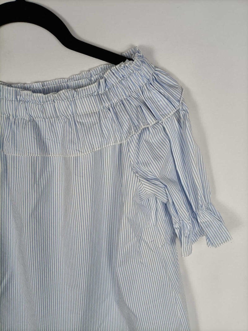 Otras. Tu (s/m). Blusa de rayas azul y blanca con el cuello barco y elástico en las mangas. De sisa a sisa 55 cm largo 52 cm