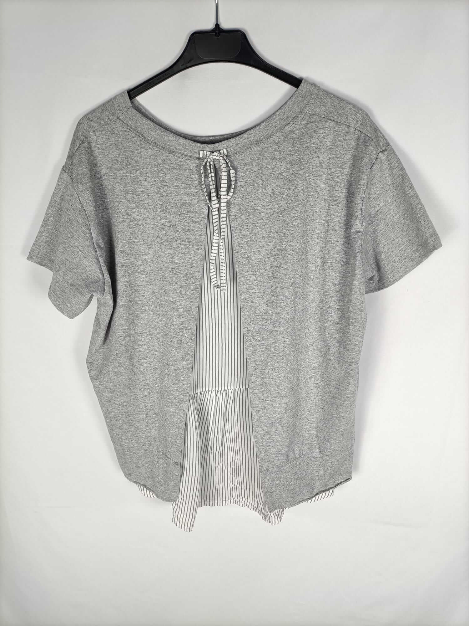 Camiseta gris fluida con "blusa" de rayas por la espalda elástica. Largo 63 cm