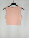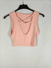 Otras. Tu (s/m). Croptop rosa palo de licra con la espalda baja con tiras. Elastico. Largo 38 cm