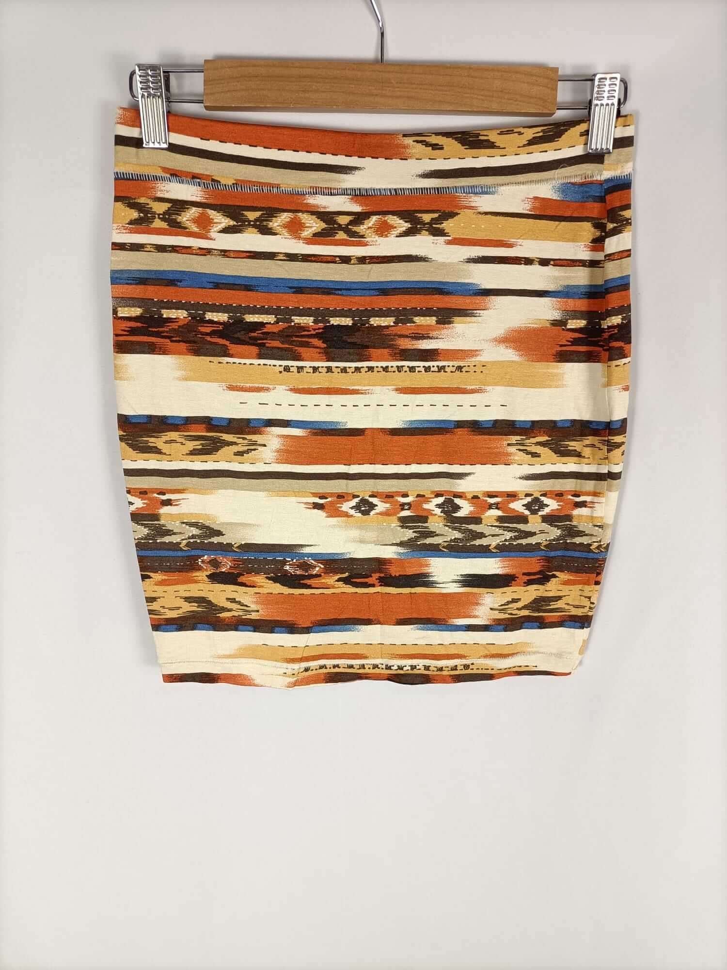Otras. M. Falda elástica ajustada con estampado étnico en tonos tierra. Largo 42 cm