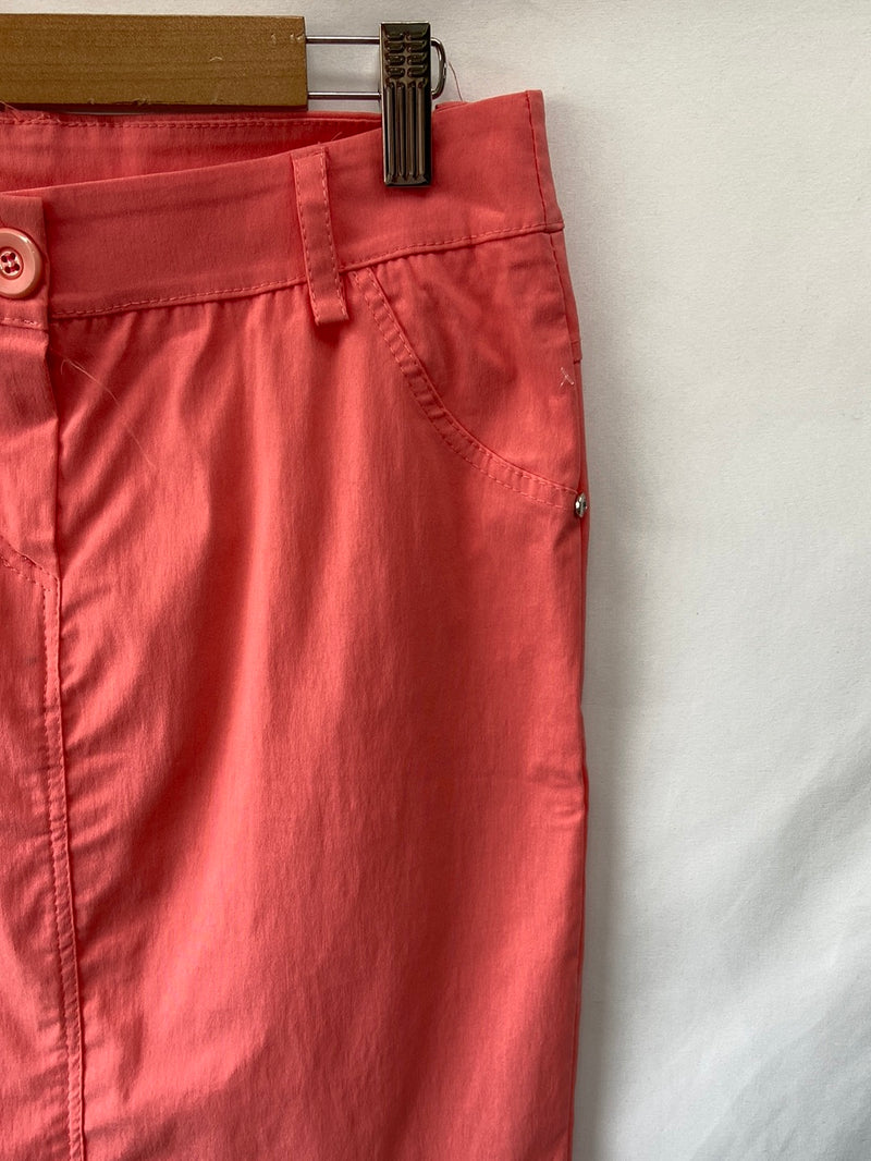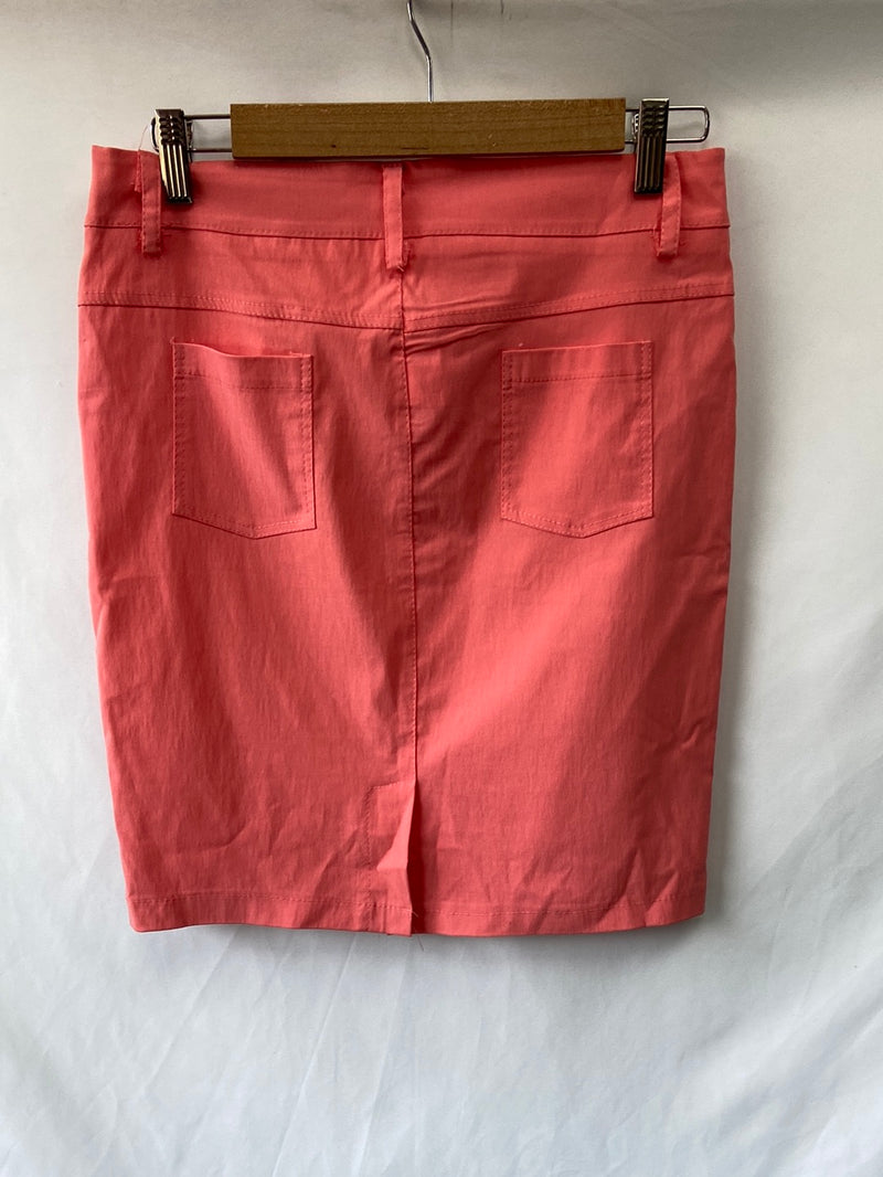Falda corta coral de tejido elástico. Cintura 38 cm Largo 51 cm