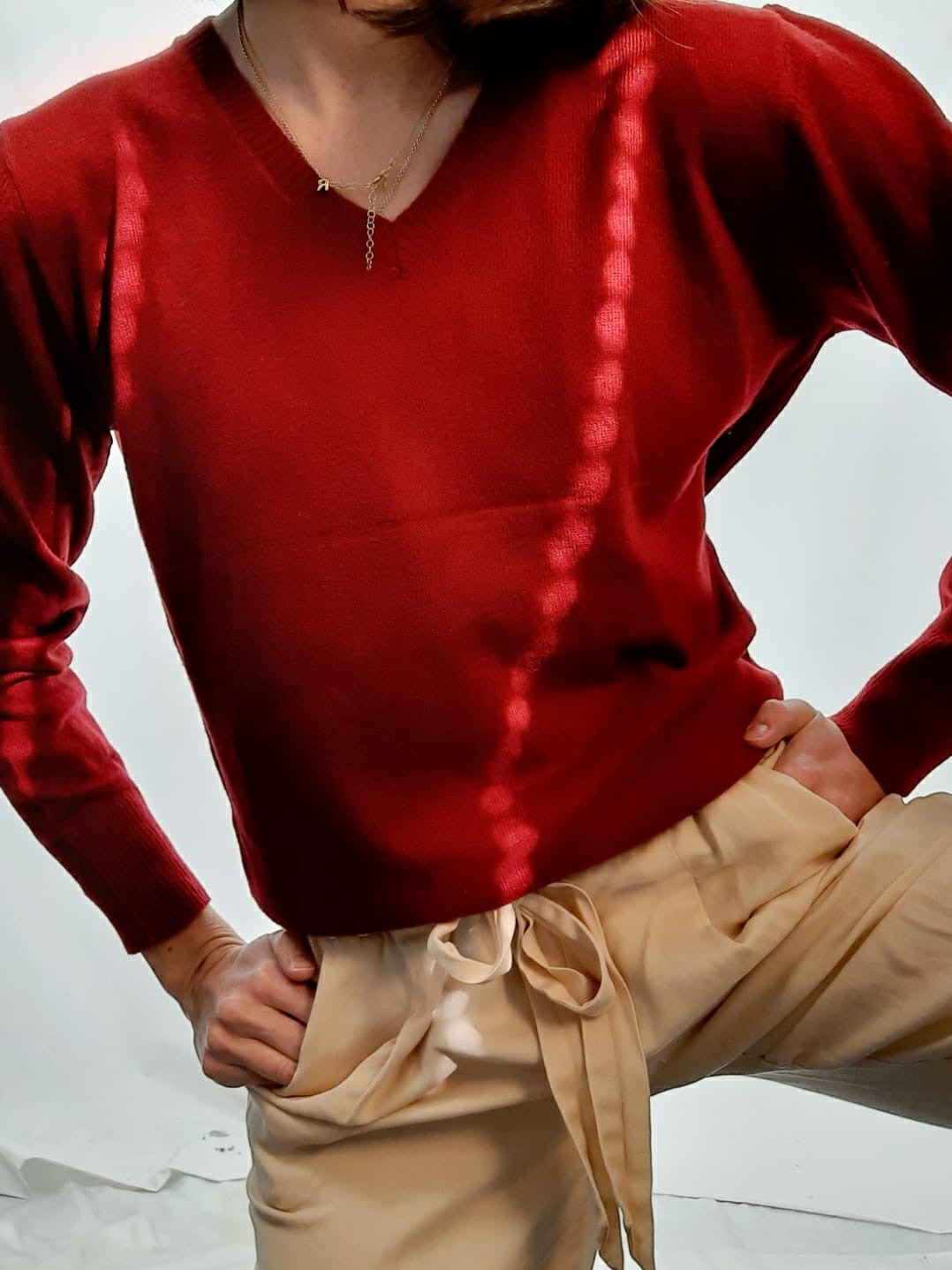 Jersey básico color teja oscuro de punto muy suave. Elástico. Largo 57 cm