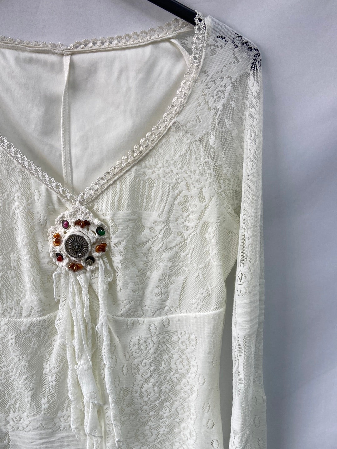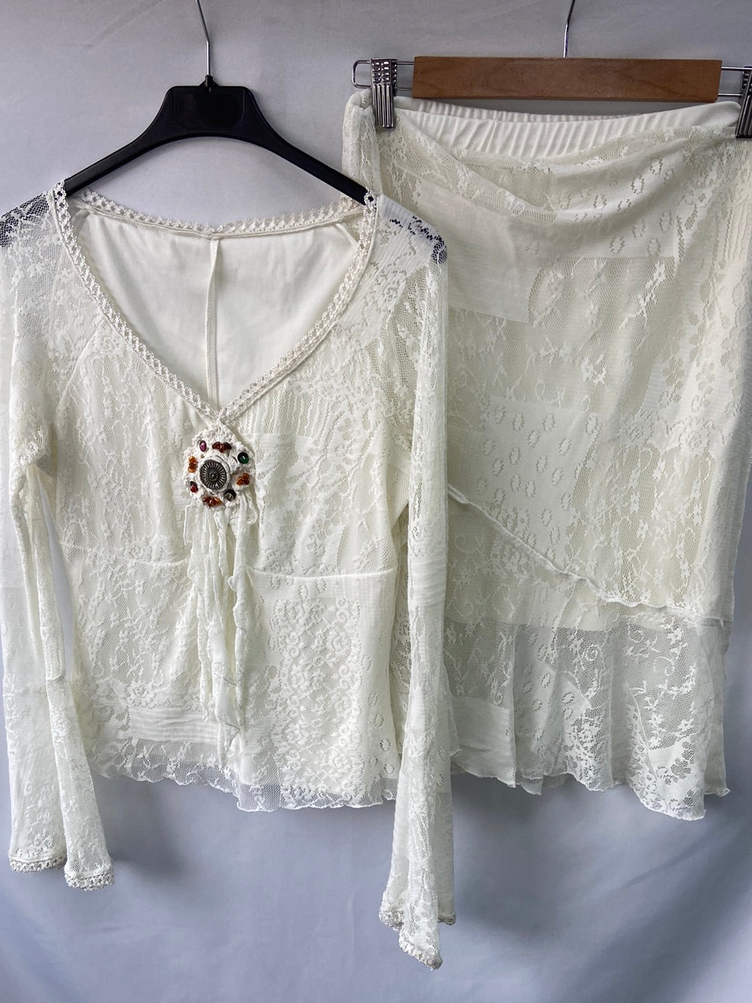 Top blanco roto de encaje. Elástico. Total look. Largo 54 cm