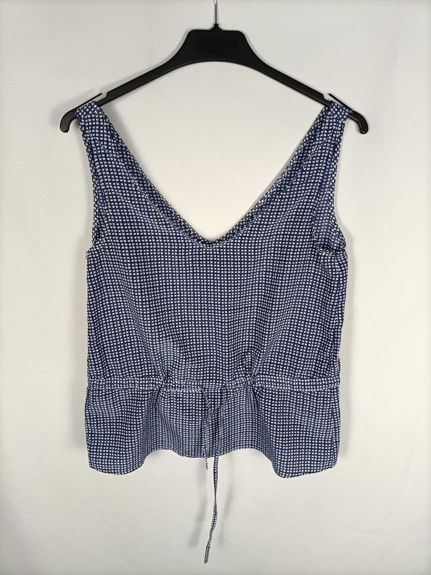 Otras. Xs. Top de cuadros azul y blanco ajustable en la cintura. No elástico. De sisa a sisa 42 cm largo 56 cm