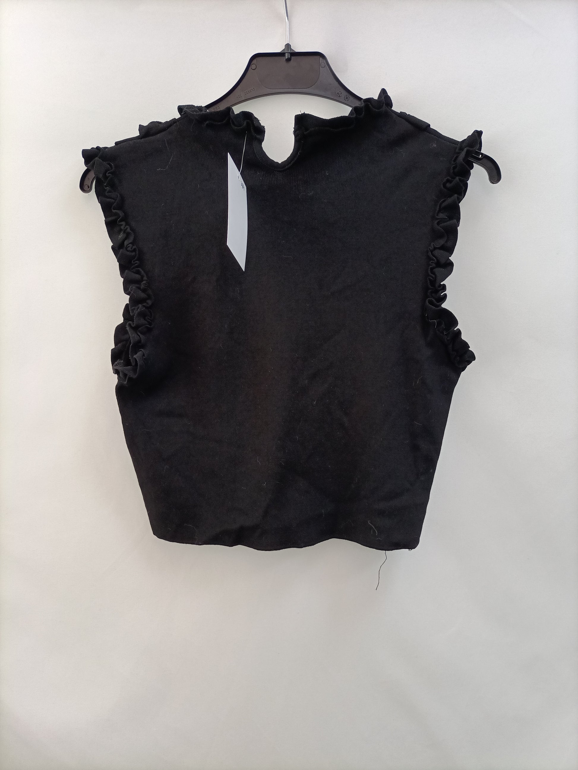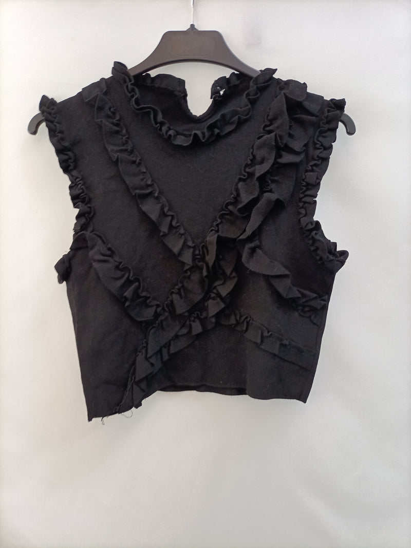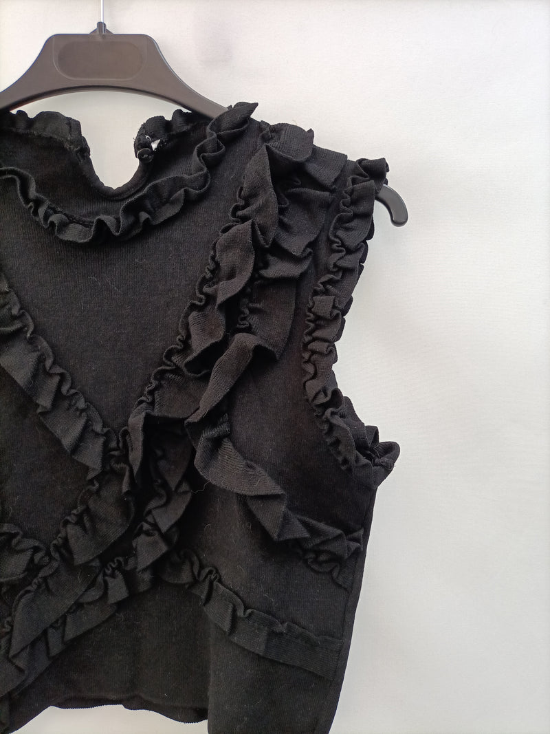 Top negro ajustado muy elástico con volantitos fruncidos. Largo 43 cm. Fuera para foto